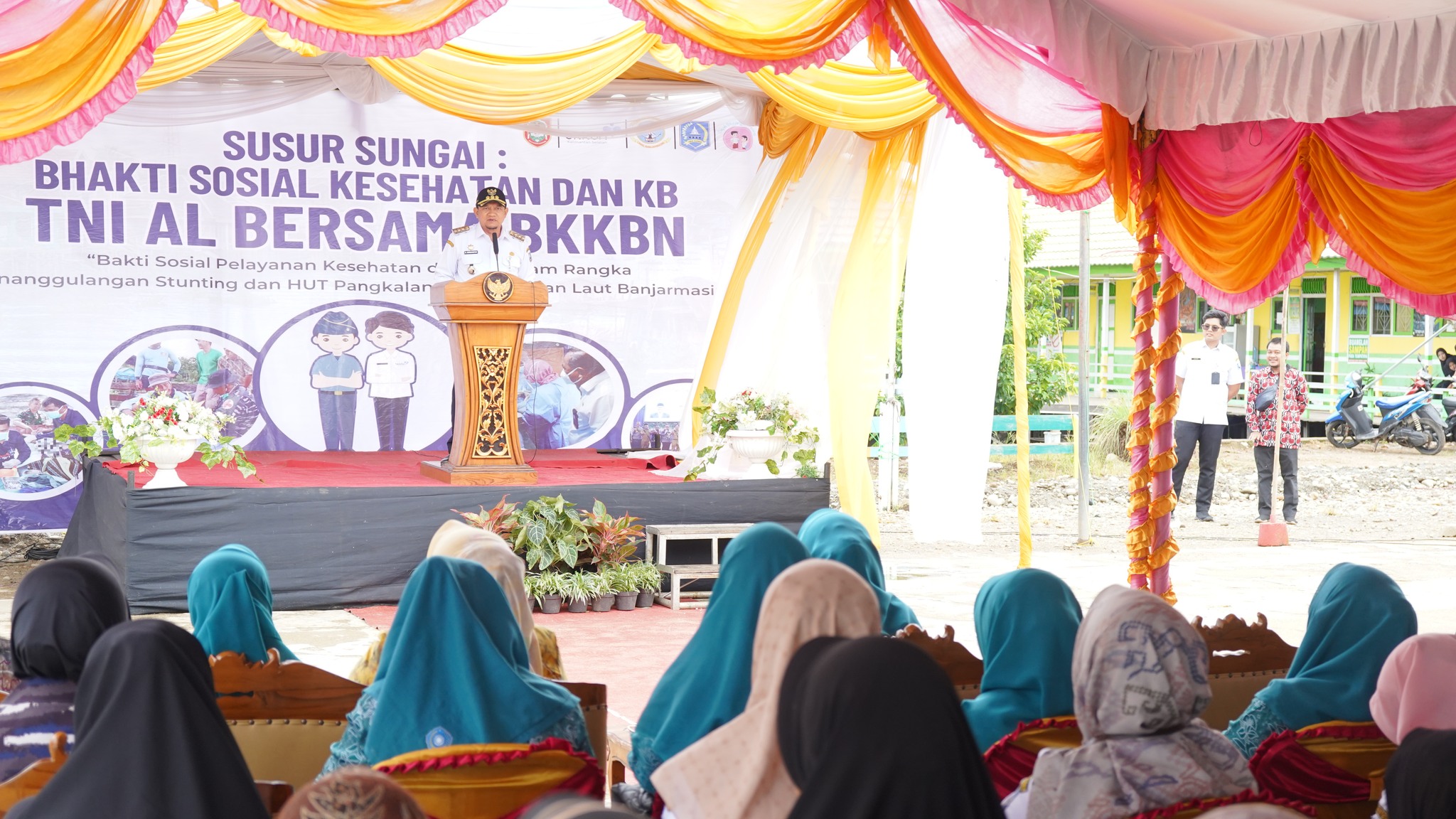 Pada kesempatan itu, Pj Bupati HSS H. Hermansyah mengapresiasi dan menyambut baik atas terlaksananya kegiatan kegiatan Susur Sungai Bhakti Sosial Kesehatan dan KB TNI Angkatan Laut bersama BKKBN Provinsi Kalimantan Selatan, dengan mengambil tema “Bakti Sosial Pelayanan Kesehatan dan KB Dalam Rangka Penanggulangan Stunting”.