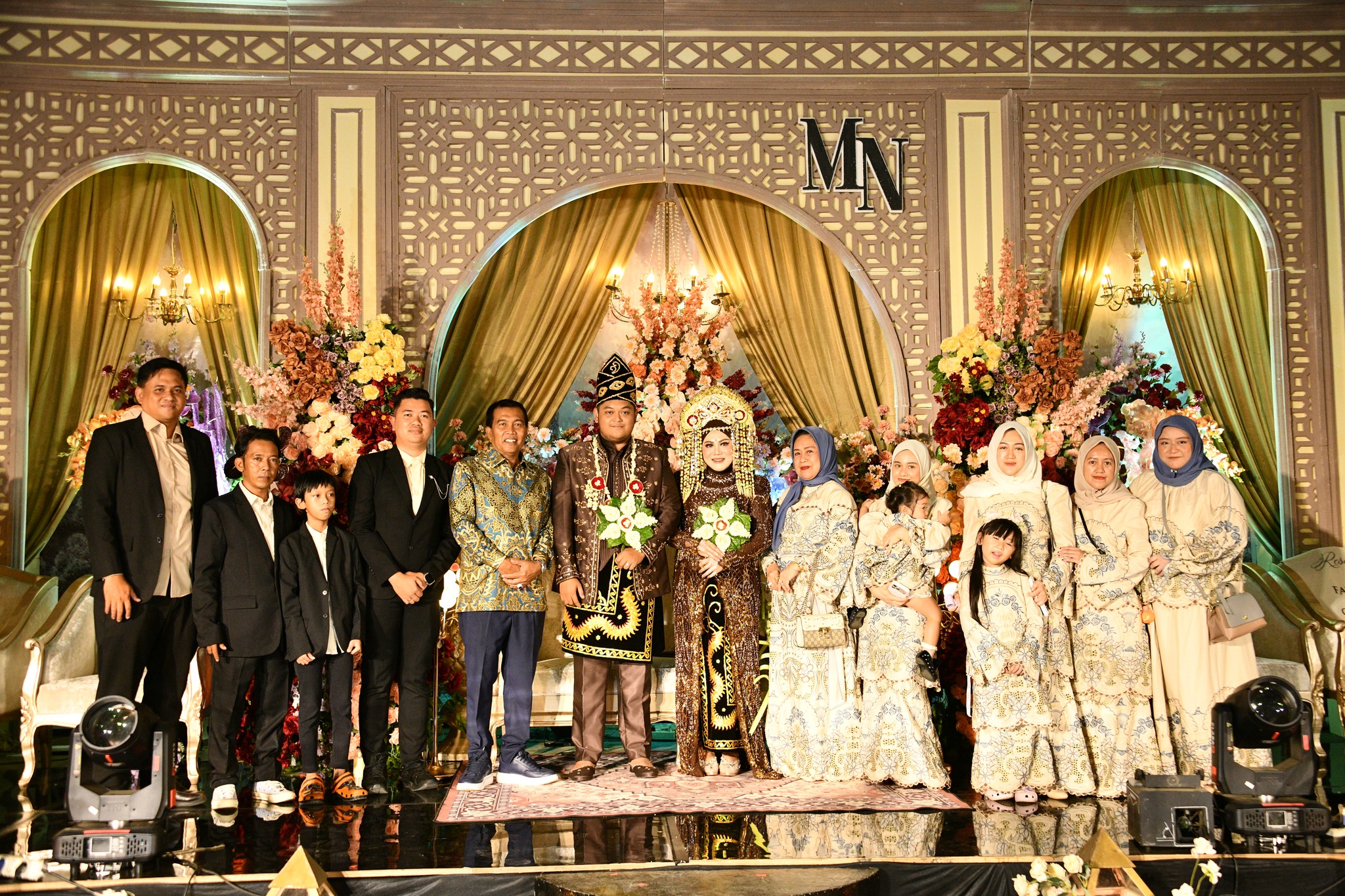 Resepsi pernikahan berlangsung dengan khidmat dan penuh kehangatan, dihadiri oleh keluarga besar kedua mempelai, tokoh masyarakat, serta para tamu undangan dari berbagai kalangan. Suasana kebersamaan dan kekeluargaan terasa kental, mencerminkan kebahagiaan yang menyertai hari istimewa kedua mempelai.