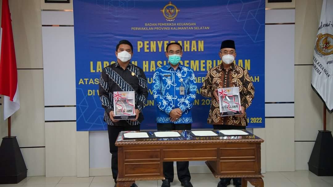Kepala Badan Pemeriksa Keuangan (BPK) Republik Indonesia Perwakilan Kalimantan Selatan M. Ali Asyhar S.E., Ak., CA, CSFA menyatakan bahwa pada hari ini yang pertama di Provinsi Kalimantan Selatan dalam Penyerahan Laporan Hasil Pemeriksaan (LHP) atas Laporan Keuangan Pemerintah Daerah (LKPD) Tahun Anggaran 2021 yang diberikan kepada Pemerintah Kabupaten Hulu Sungai Selatan dan sekaligus menerima Opini Wajar Tanpa Pengecualian (WTP) yang ke-9 (sembilan). Jum’at (13/05/2022)