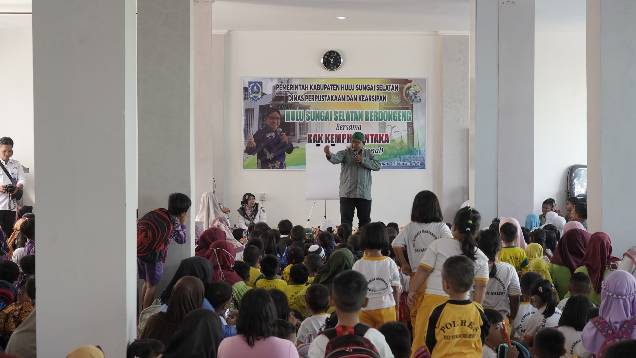 Kegiatan tersebut menghadirkan pendongeng Nasional yakni Kak Kempho Antaka yang dalam kesempatannya tersebut menyajikan Story Telling yang cukup menghibur, terlebih untuk meningkatkan minat baca anak-anak di Kabupaten Hulu Sungai Selatan.