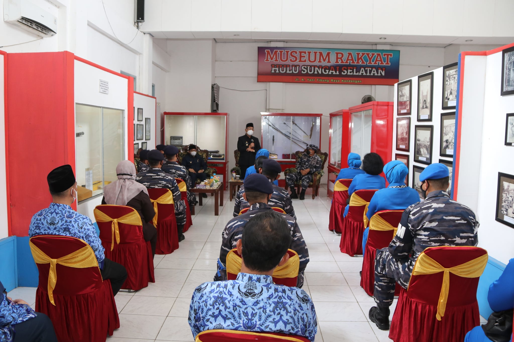 Tepat 72 Tahun Peringatan HUT Proklamasi Pemerintahan Gubernur Tentara ALRI DIVISI IV Pertahanan Kalimantan atau proklamasi kesetiaan Kalimantan Selatan terhadap Republik Indonesia, Bupati Hulu Sungai Selatan Drs. H. Achmad Fikry, MA didampingi Wakil Bupati Hulu Sungai Selatan Syamsuri Arsyad, S. AP, MA dan Kepala Dinas Pendidikan Kab. HSS Hj. Siti Erma, S.Sos, M.AP menerima kunjungan Komandan Pangkalan Angkatan Laut (Danlanal) Banjarmasin Kolonel Laut (P) Herbiyantoko, M.Tr. Hanla bertempat di Museum Rakyat HSS. Senin(17/05/2021).