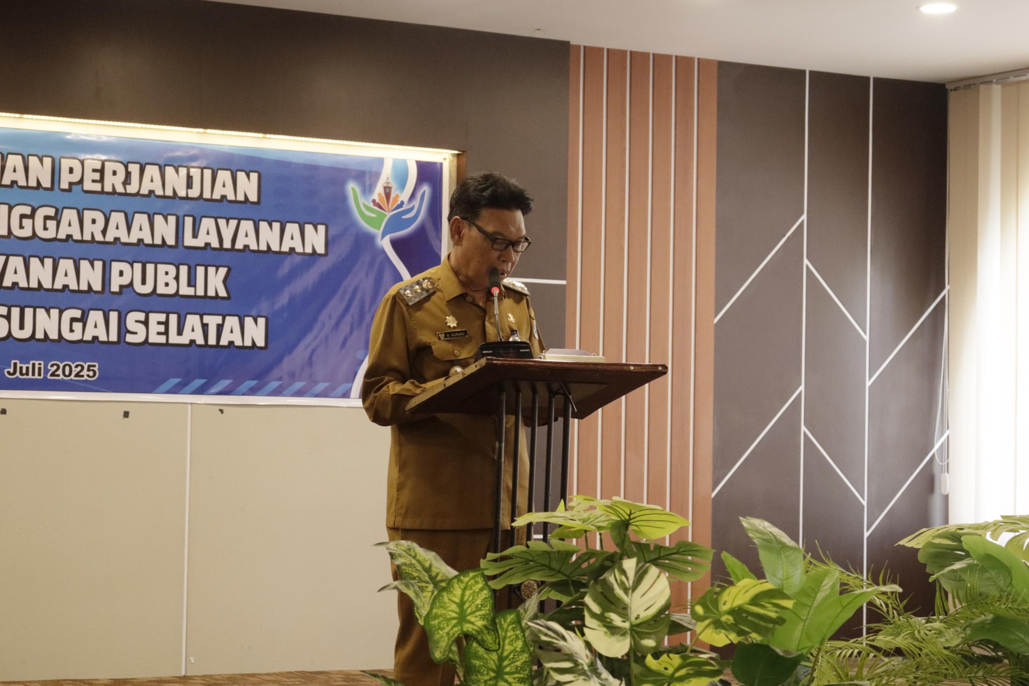 Wakil Bupati (Wabup) Hulu Sungai Selatan, H. Suriani, S.Sos., M.AP, yang mewakili Bupati HSS, dalam sambutan yang dibacakannya menekankan pentingnya pelayanan satu atap berbasis teknologi informasi dalam meningkatkan kecepatan dan efisiensi pelayanan pemerintah kepada masyarakat.