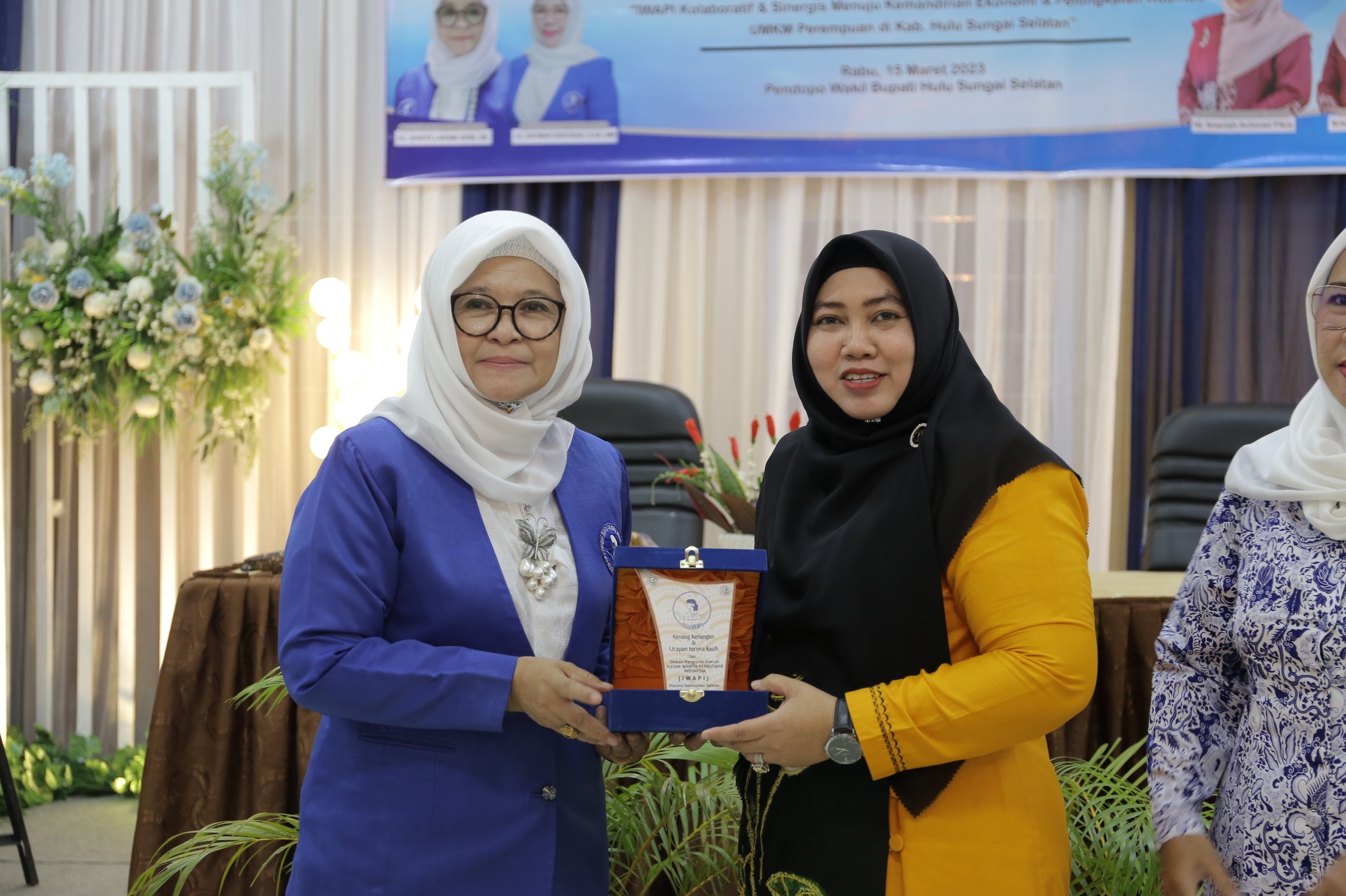 Ketua Umum DPC IWAPI Kabupaten HSS, Hj. Hatimah Rasyidah, S.Ag, MM menyampaikan rasa bangganya karena dipenghujung masa jabatannya selama 5 tahun berjalan IWAPI mendapat apresiasi dari pemerintah daerah.
