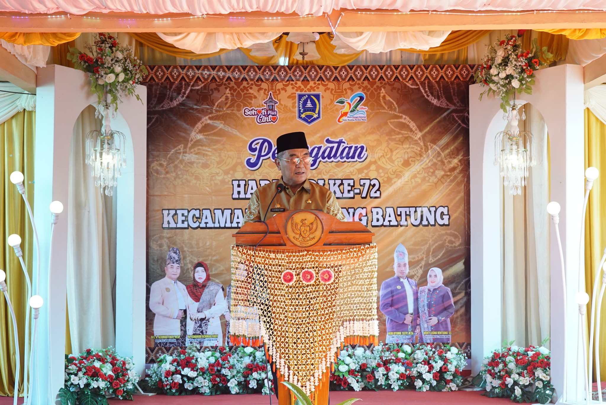 Bupati Hulu Sungai Selatan (HSS) Drs. H. Achmad Fikry, M.AP didampingi istri Hj.Isnaniah Achmad Fikry selaku Ketua TP PKK Kab.HSS menghadiri kegiatan puncak peringatan Hari Jadi Padang Batung ke–72 yang digelar oleh Pemerintah Kecamatan, bertempat di Halaman Kantor Kec. Padang Batung, Sabtu (31/12).