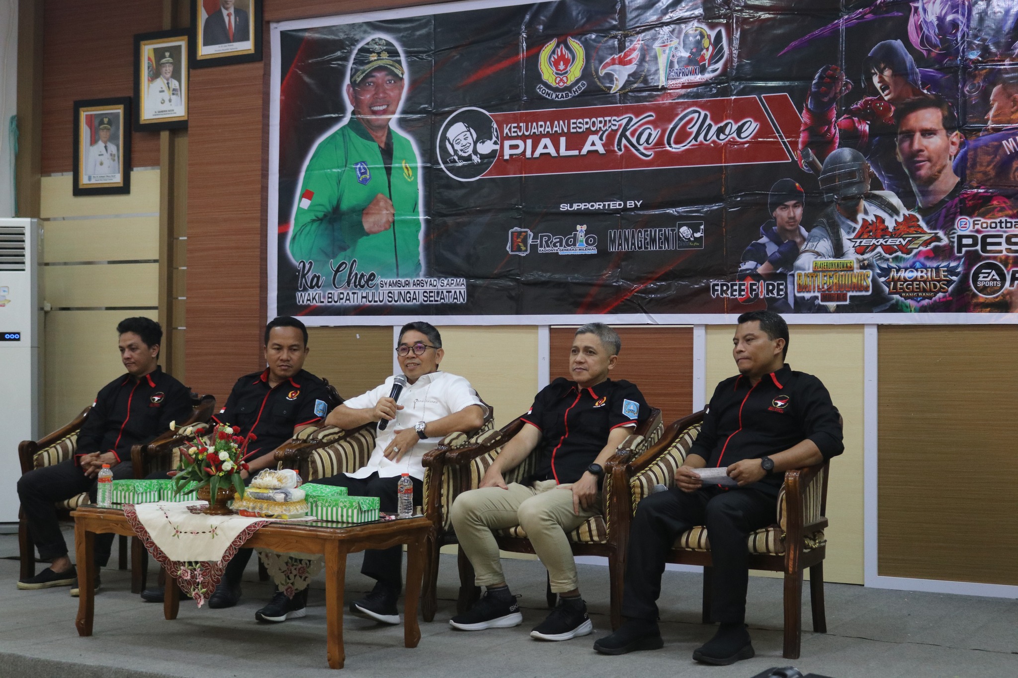 Rabu sore, (07/12) Wakil Bupati Hulu Sungai Selatan (HSS) Syamsuri Arsyad, S.AP, MA membuka Kejuaraan ESports Piala Ka Choe Cup Season II yang dilaksanakan selama 3 hari, mulai tanggal 9 – 11 Desember 2022.