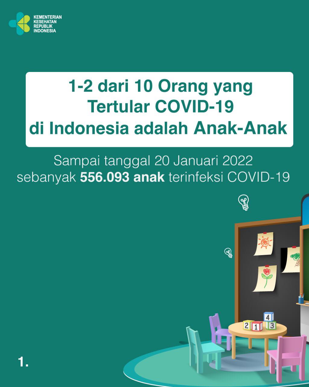 Sejak awal pandemi hingga 20 Januari 2022, tercatat sudah lebih dari 500 ribu anak Indonesia yang terpapar COVID-19.