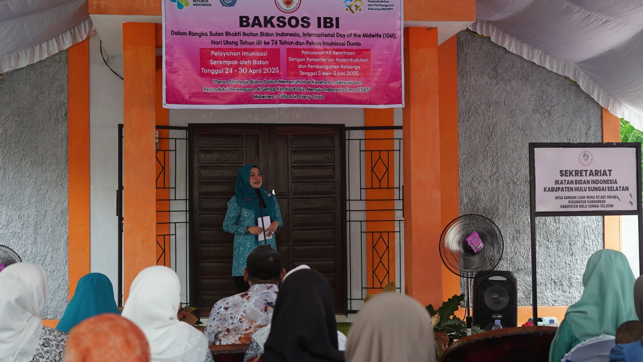 Ketua Tim Penggerak Pemberdayaan dan Kesejahteraan Keluarga (TP PKK) Kabupaten Hulu Sungai Selatan (HSS), Hj. Tata Syafrudin Noor, menghadiri kegiatan Bakti Sosial yang diselenggarakan oleh Ikatan Bidan Indonesia (IBI) Cabang HSS. Kegiatan ini digelar dalam rangka Bulan Bhakti IBI, peringatan International Day of the Midwife (IDM), Hari Ulang Tahun ke-74 IBI, serta Pekan Imunisasi Dunia, dan bertempat di Sekretariat IBI HSS pada Rabu, 21 Mei 2025.