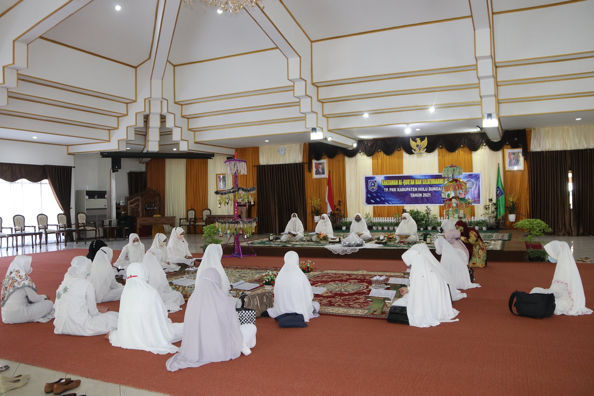 Khataman Al-Quran dibimbing langsung oleh Hj. Taniah Sanar dan diikuti oleh Ketua TP-PKK Kab. HSS Hj. Isnaniah, Wakil Ketua I TP-PKK Kab. HSS Srie Astuti, Wakil Ketua II TP-PKK Kab. HSS Hj. Elyani Yustika, seluruh Ketua TP-PKK Kecamatan dan pengurus TP-PKK Kab. HSS.