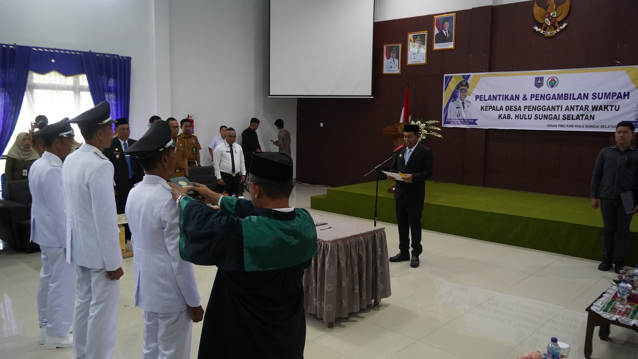 Dalam prosesi tersebut, Bupati HSS, H. Syafrudin Noor, SE, S.Sos, memimpin langsung pengambilan sumpah dan janji jabatan Kepala Desa Pengganti Antar Waktu, yang akan melanjutkan masa bakti hingga akhir periode sesuai ketentuan.