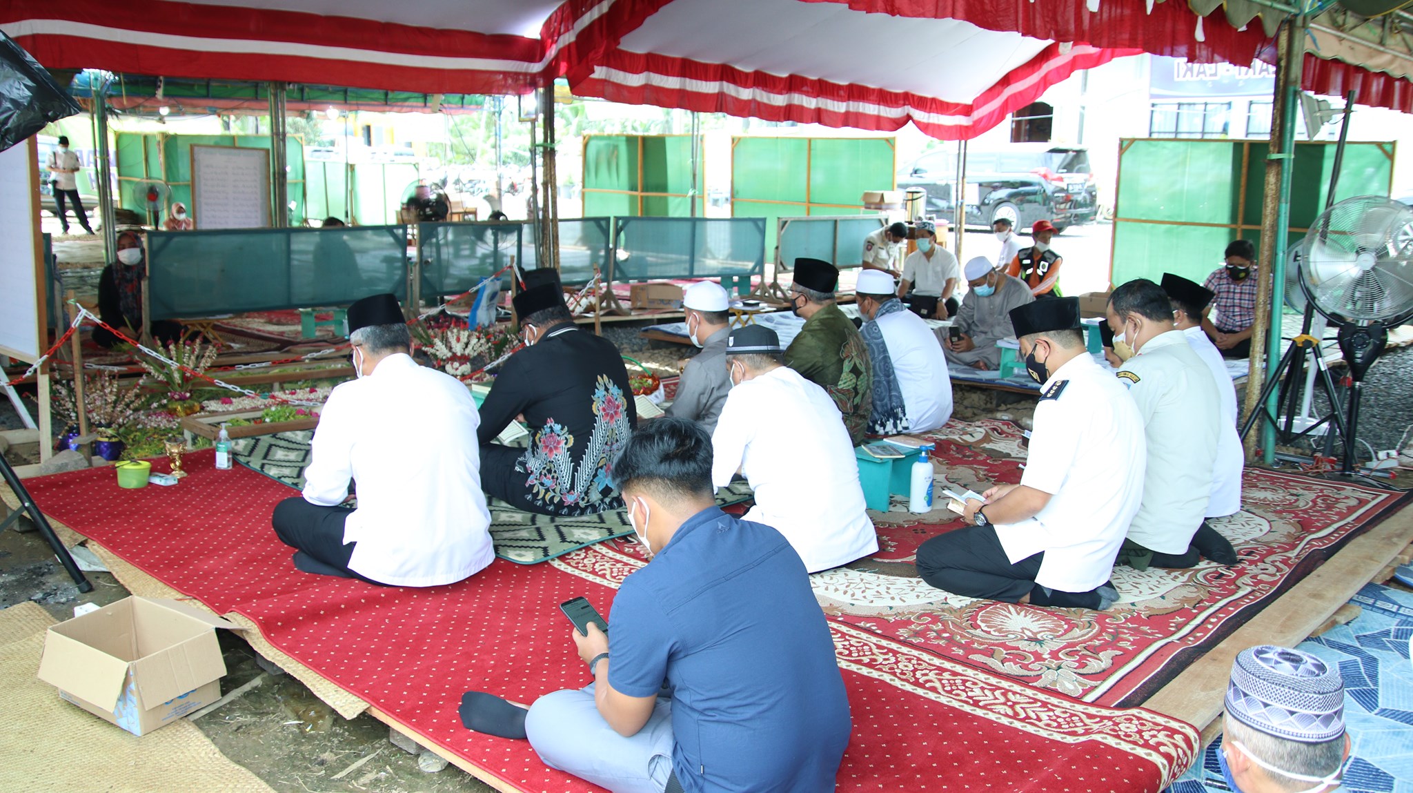 Tampak turut juga menyambut di sana, Asisten Pemerintahan dan Kesejahteraan Rakyat Drs. Efran, M.AP, Kasatpol PP Drs. H. Iwan Friady, M.AP, Kabag Prokopim, Ika Aguspiannor, S.Sos, M.IP, dan Kabag Kesra Fajar Abdi, ST, serta Camat Simpur M. Taufiqurrahman, SSTP, M.Si.