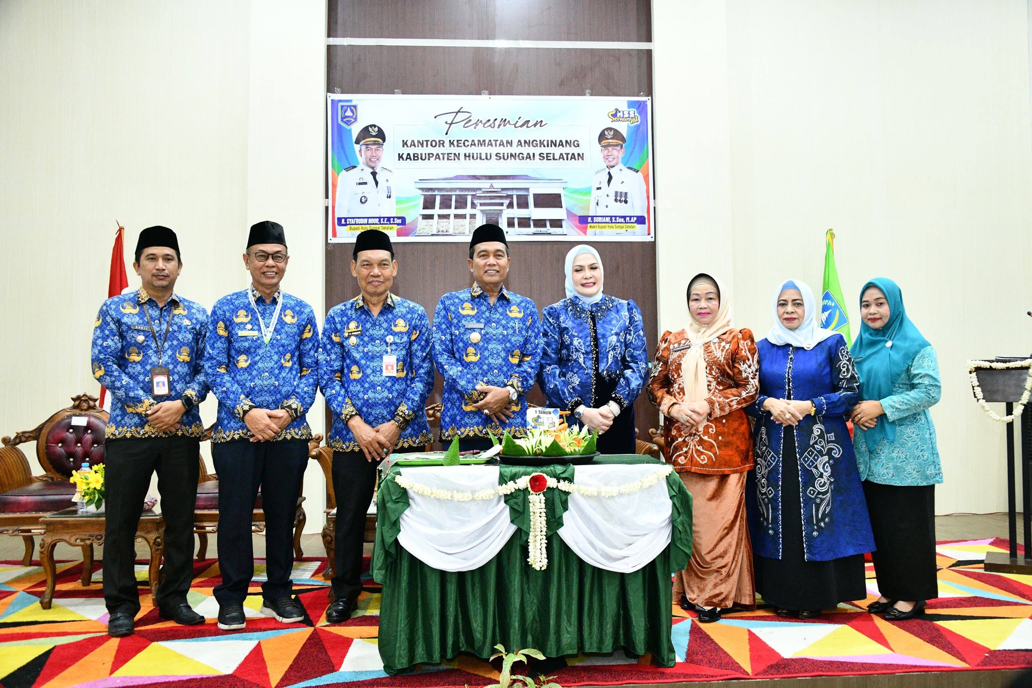 Dalam rangkaian satu tahun kepemimpinan Bupati dan Wakil Bupati Hulu Sungai Selatan (HSS), Bupati HSS H. Syafrudin Noor, SE., S.Sos., didampingi Ketua TP PKK Kabupaten HSS Hj. Mustaidah Syafrudin Noor, menghadiri Peresmian Bangunan Kantor Kecamatan Angkinang yang dirangkai dengan Launching Beras Sejahtera Tahun 2026 serta Launching BPJS Ketenagakerjaan (Perjaka HSS Semangat). Kegiatan tersebut berlangsung di Aula Kantor Kecamatan Angkinang, Rabu (18/2).