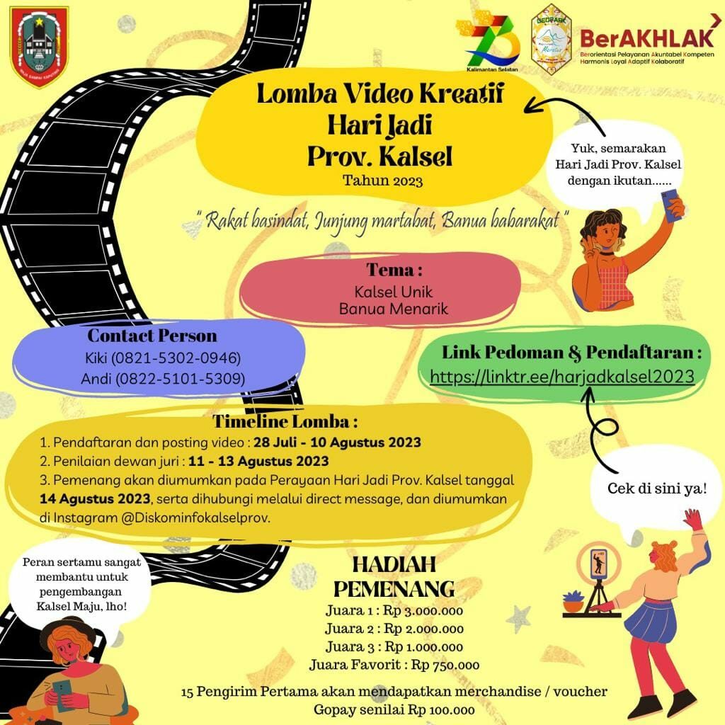 Yuk segera daftarkan dirimu dan menangkan Lomba Video Kreatif Hari Jadi Provinsi Kalsel 🥳