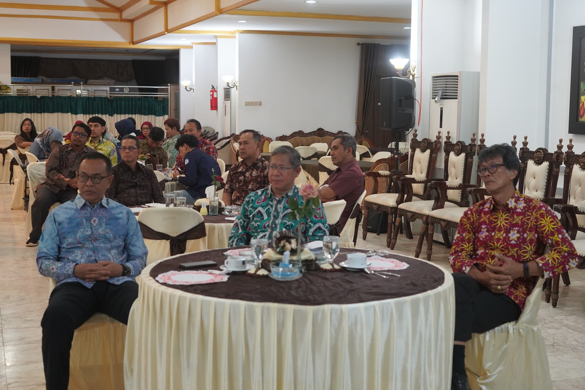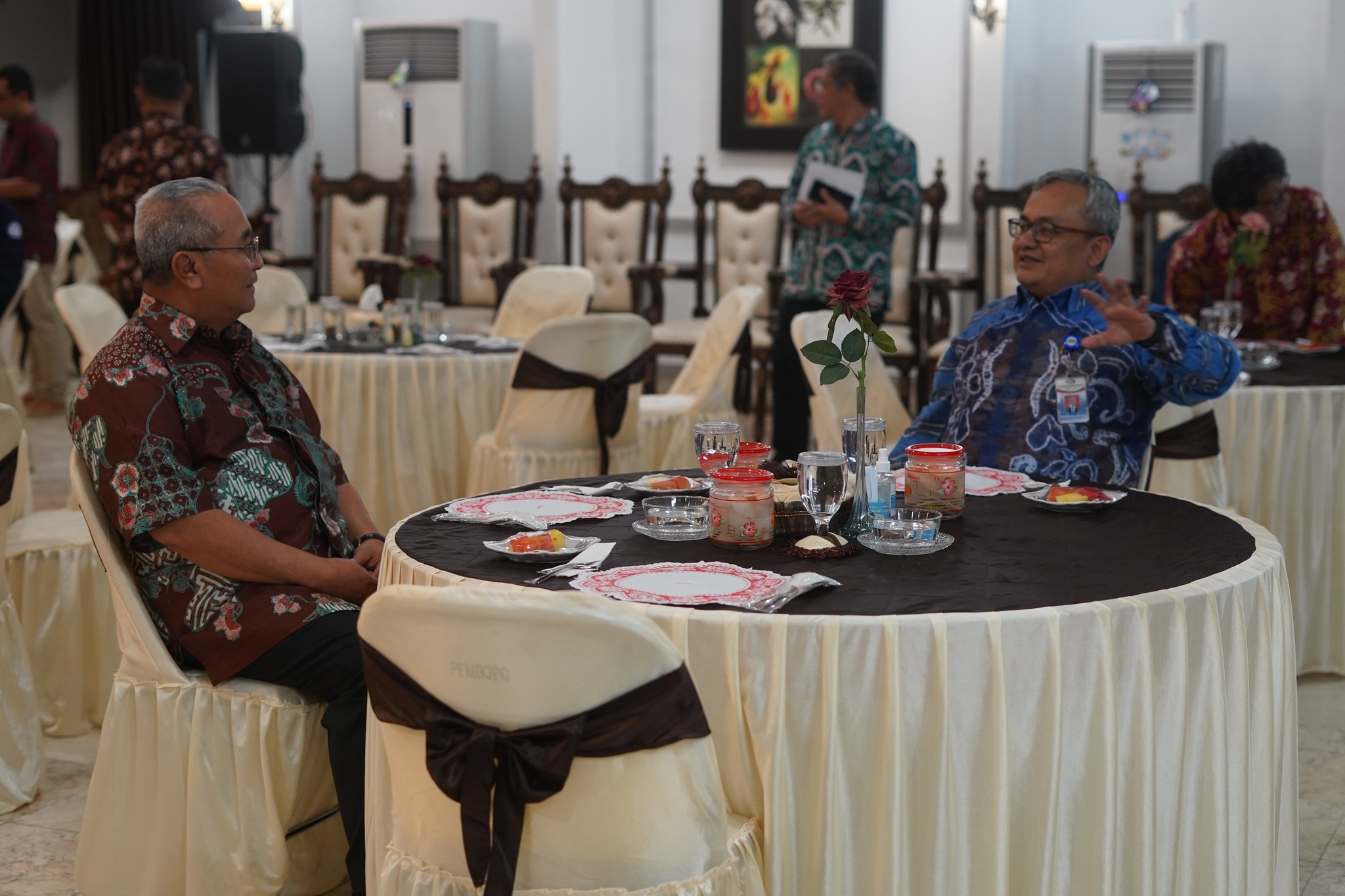 Acara ramah tamah dilakukan dengan suasana santai, perbincangan dilakukan sambil menikmati makanan di ruang tengah Pendopo Kab. HSS.