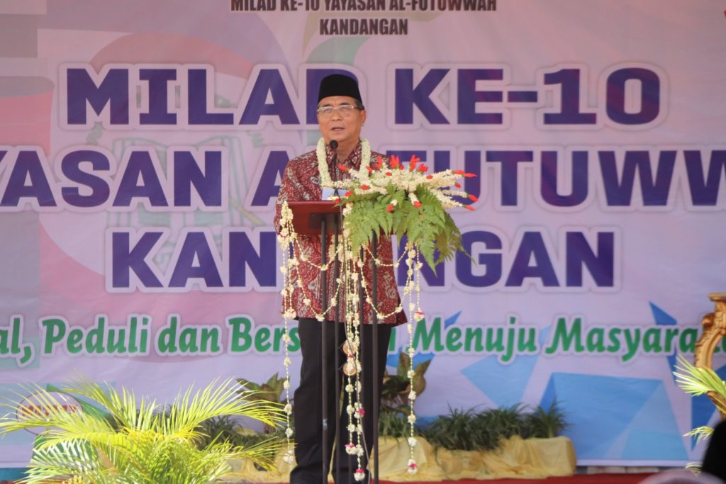 “ saya mengucapkan selamat milad ke-10 kepada Yayasan Al-Futuwwah Kandangan baik kepada Pembina maupun pengurus yayasan beserta para pendidik dan tenaga kependidikan. Semoga dengan bertambahnya usia yayasan ini menjadikan Yayasan Al Futuwwah berkembang semakin maju dan agamis serta semakin besar kontribusinya dalam rangka turut membangun generasi muda yang cerdas dan agamis di kabupaten hulu Sungai Selatan”. Ungkapnya