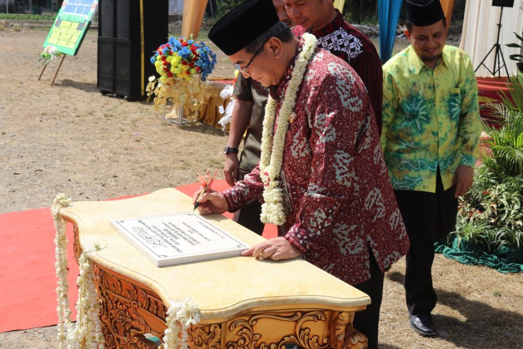 Acara juga dirangkai dengan penandatanganan prasasti oleh Bupati HSS dan Ketua Yayasan Al-Futuwwah Kandangan, kemudian pengguntingan pita oleh Bunda PAUD Kab. HSS Hj. Isnaniah Achmad Fikry, dan dilanjutkan dengan peninjauan Gedung Baru SMP IT Qurrata A’yun Kandangan beserta rombongan.