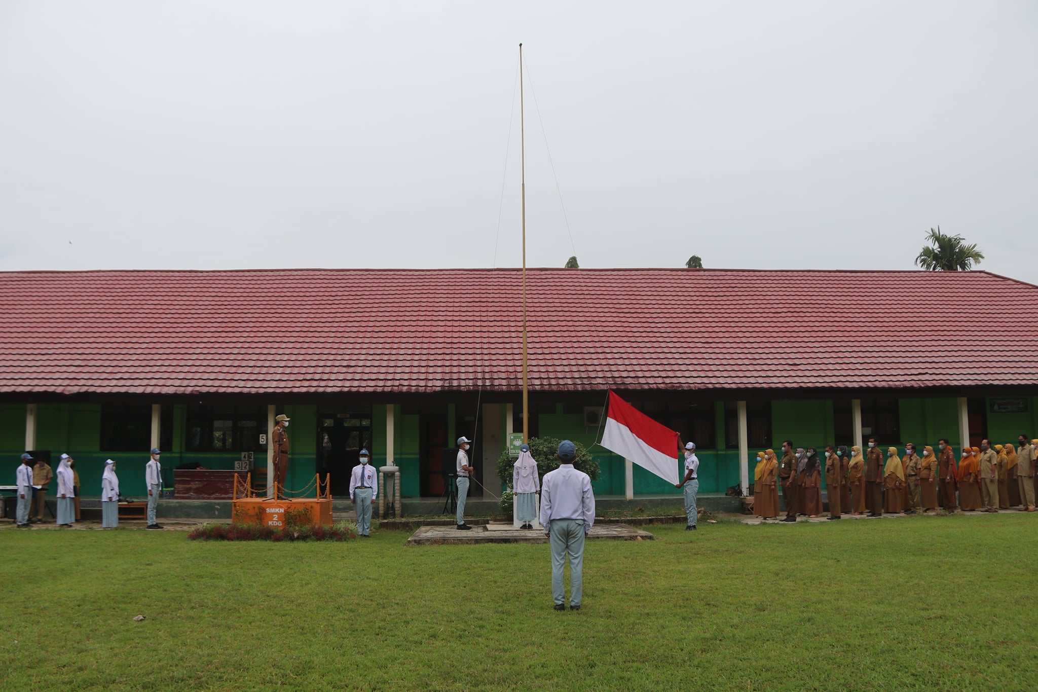 Dilaksanakan di halaman sekolah SMKN 2 Kandangan, upacara tersebut berlangsung dengan penuh khidmat.