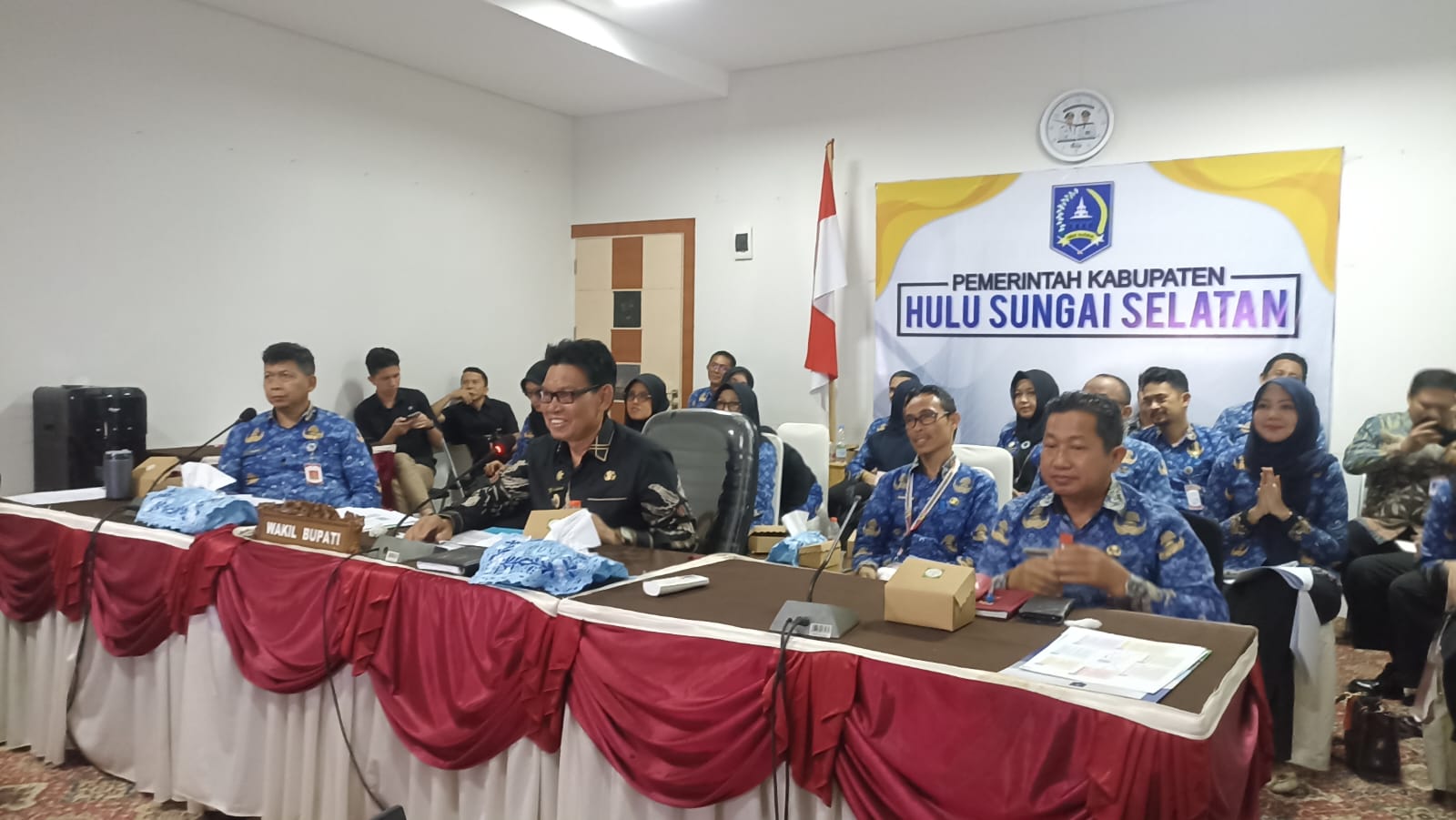Meskipun sedang menjalankan tugas dinas di luar daerah, Bupati HSS, H. Syafrudin Noor, SE, S.Sos tetap hadir secara daring untuk memberikan paparan pendahuluan. Beliau menekankan pentingnya pergeseran paradigma pemerintahan menuju Entrepreneur Government, di mana daerah tidak lagi hanya bergantung pada dana transfer pusat, tetapi mampu menciptakan peluang investasi.