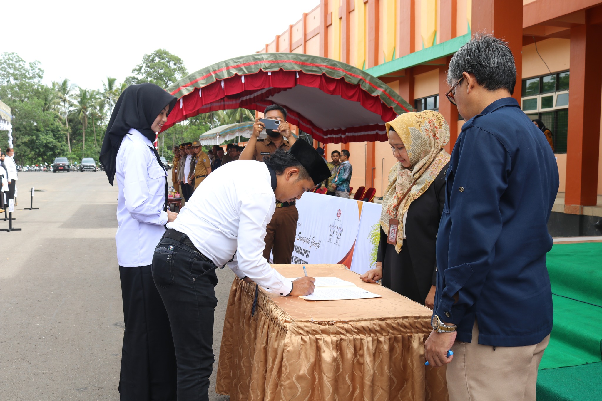 Komisi Pemilihan Umum Kabupaten Hulu Sungai Selatan (KPU Kab. HSS) mengadakan pelantikan dan pengambilan sumpah/ janji Anggota Panitia Pemungutan Suara (PPS) se Kab. HSS Pemilihan Umum Tahun 2024 di tingkat desa/kelurahan di Halaman Stadion 2 Desember, Selasa (24/01).