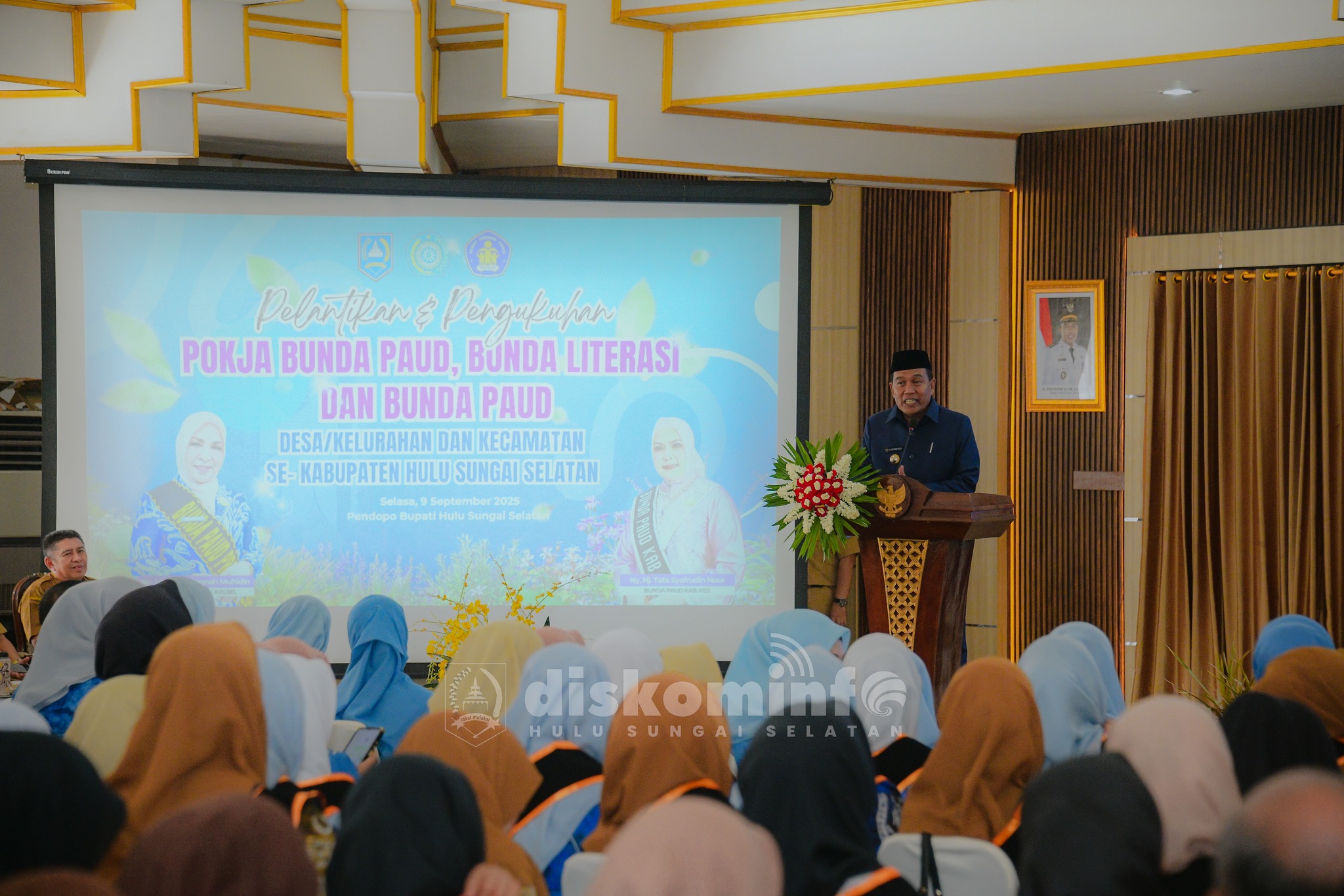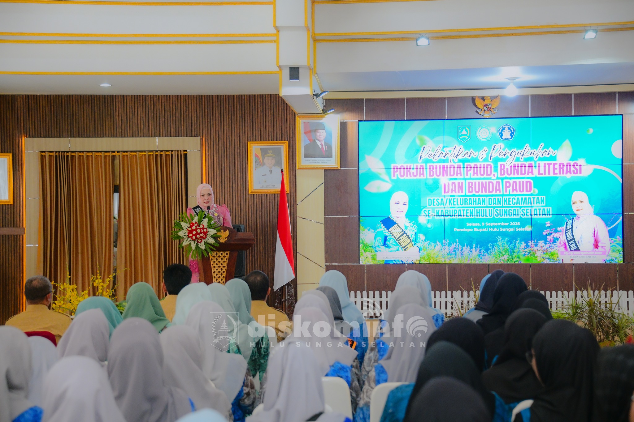 Pemerintah Kabupaten Hulu Sungai Selatan (HSS) menggelar acara Pelantikan dan Pengukuhan Bunda Literasi, Pokja Bunda PAUD, serta Bunda PAUD Desa/Kelurahan dan Kecamatan se-Kabupaten HSS di Pendopo Kabupaten, Selasa (9/09).