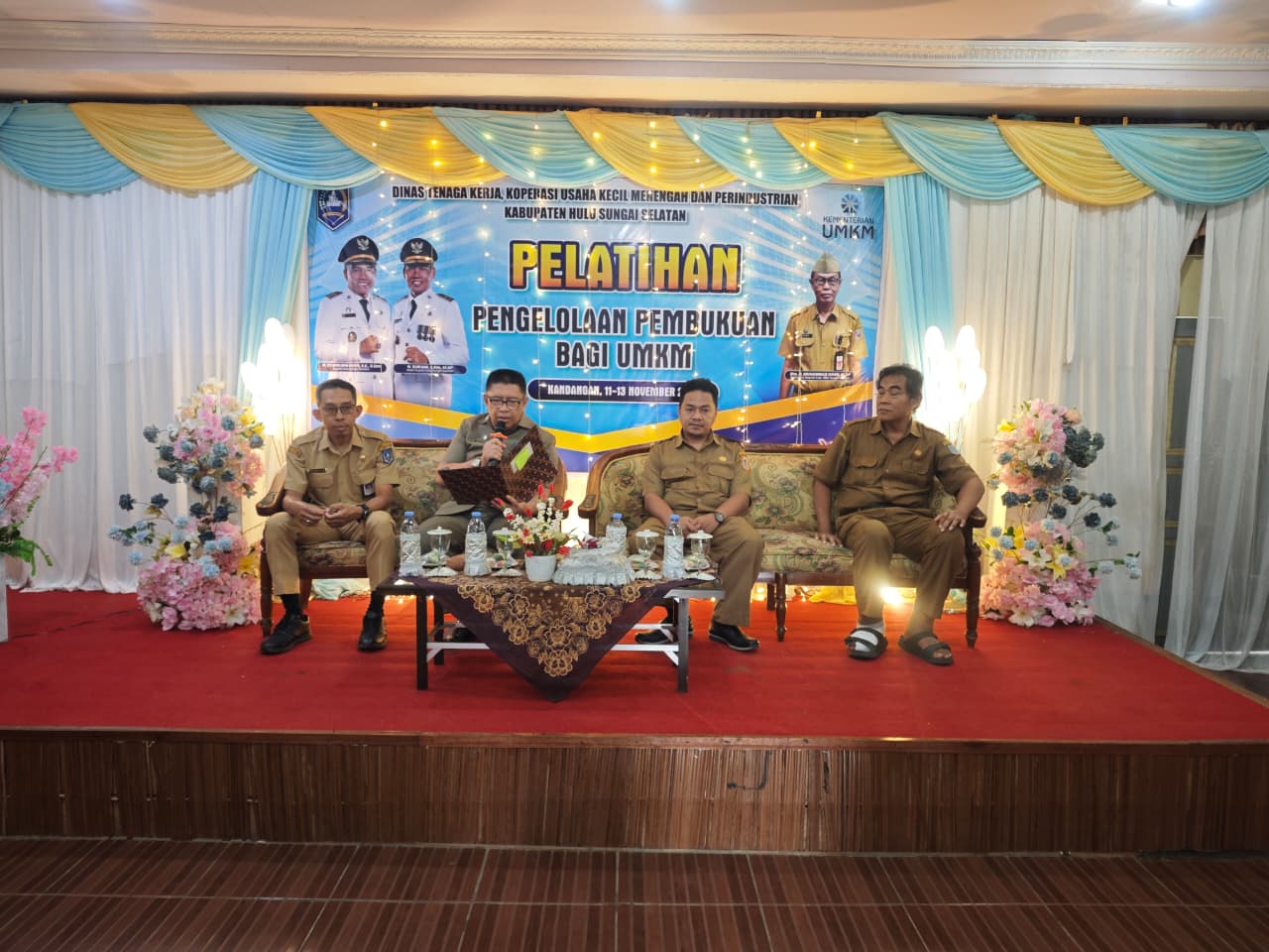 Dalam upaya meningkatkan kemampuan pelaku usaha dalam mengelola keuangan, Dinas Tenaga Kerja, Koperasi, Usaha Kecil Menengah dan Perindustrian Kabupaten Hulu Sungai Selatan (HSS) menyelenggarakan Pelatihan Pengelolaan Pembukuan bagi UMKM. Kegiatan ini berlangsung dari tanggal 11 hingga 13 November 2025 di Aula Dinas Tenaga Kerja, Koperasi, Usaha Kecil Menengah dan Perindustrian Kabupaten HSS.