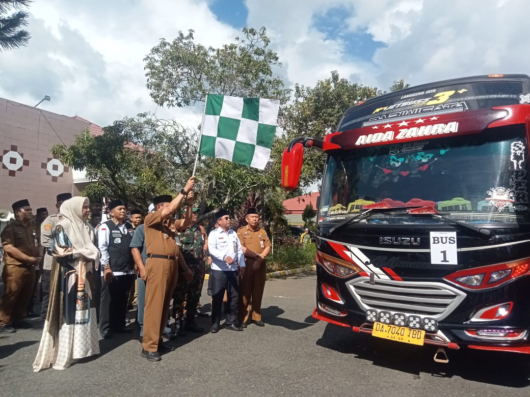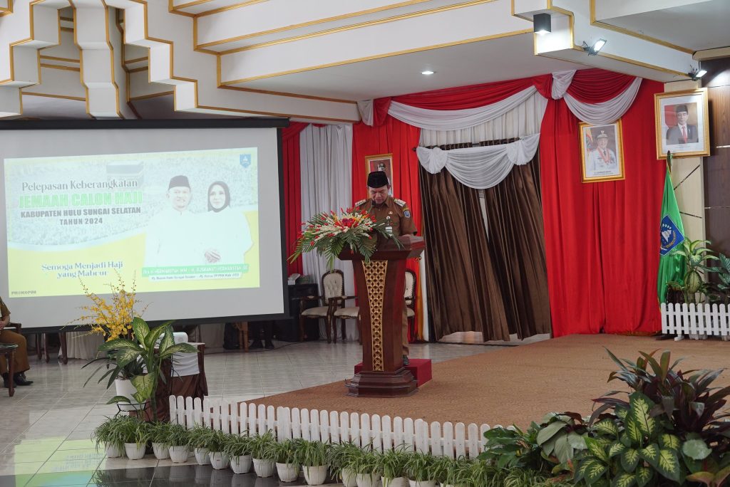 Sebelum pelepasan, Pj Bupati HSS memberikan arahan agar saat keberangkatan nanti jemaah sekalian dapat dilaksanakan dengan tertip dan teratur serta berjalan dengan aman dan lancar