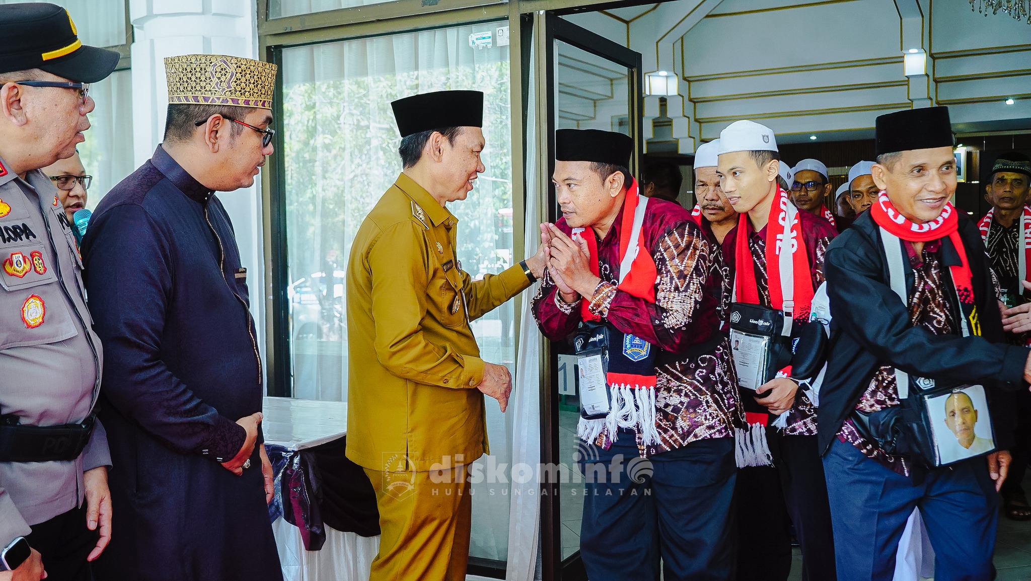 beliau menyampaikan atas nama Pemerintah Kabupaten Hulu Sungai Selatan dan seluruh masyarakat, mendoakan yang terbaik. Semoga seluruh jemaah diberikan kesehatan, kekuatan, dan kelancaran dalam menjalankan seluruh rangkaian ibadah haji.