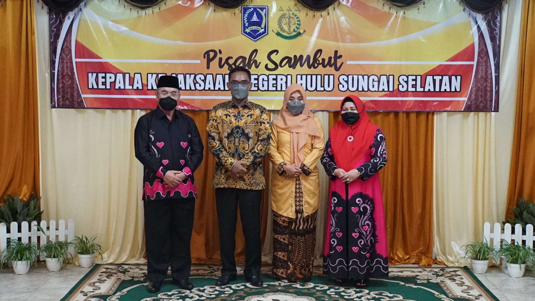 Turut hadir di acara tersebut Bupati HSS Drs. H. Achmad Fikry , M.AP, Wakil Bupati HSS Syamsuri Arsyad, S.AP, MA dan Sekretaris Daerah Kab. HSS Drs. H. Muhammad Noor, M.AP masing-masing beserta istri, unsur Forkopimda Kab. HSS, Ketua Pengadilan Agama Kandangan, Ketua Pengadilan Agama Nagara, Kepala Perangkat Daerah, Camat, Pimpinan instansi vertikal serta undangan lainnya.Seperti diketahui, Kajari HSS yang lama Agus Rujito akan bertugas di tempat yang baru sebagai Kajari Batu, Jawa Timur. Sementara Kajari HSS yang baru Nul Albar yang sebelumnya menjabat sebagai, Koordinator pada Kejati Malut.Pada kesempatan tersebut Bupati HSS dalam sambutannya mengucapkan selamat bertugas di tempat yang baru kepada Kajari HSS yang lama Agus Rujito.“Kami mewakili Pemerintah dan masyarakat menyampaikan ucapan terima kasih yang setinggi-tingginya kepada Bapak Agus Rujito yang telah mendharma baktikan segenap kemampuannya bersinergi degan pemda dalam menegakkan hukum di HSS. Selamat bertugas di tempat baru, semoga lebih sukses dalam mengemban tugas dan amanah di tempat yang baru nanti,” tuturnya.Bupati juga mengucapkan selamat bertugas kepada Bapak Nul Albar selaku Kajari yang baru. “Kami bersama jajaran pemerintah siap untuk bersinergi bersama, saling mendukung untuk kelancaran tugas-tugas Bapak Nul Albar di HSS,” ujarnya. Sementara itu, Nul Albar mengucapkan rasa terima kasihnya kepada pemerintah daerah atas sambutannya yang begitu ramah.Sama seperti yang disampaikan Bupati, Kajari HSS yang baru dilantik Kajati Kalsel pada Senin (14/3) tadi juga mengharapkan dukungan dari Pemkab HSS beserta Forkopimda dan tokoh-tokoh masyarakat agar hubungan silaturrahmi yang telah terjalin dengan pimpinan dan jajaran Kejari HSS selama ini terus dapat terjaga dengan lebih baikLebih lanjut, Agus Rujito dalam kesempatan tersebut juga menyampaikan rasa terima kasihnya kepada pemerintah daerah dan masyarakat HSS.“Atas nama pribadi saya ucapkan terima kasih kepada pemerintah daerah maupun masyarakt HSS yang telah menerima kami dengan baik selama kami bertugas di sini, kami mohon pamit dan mohon maaf apabila selama kami bertugas disini terdapat kesalahan baik itu yang disengaja ataupun tidak,” tutupnya.