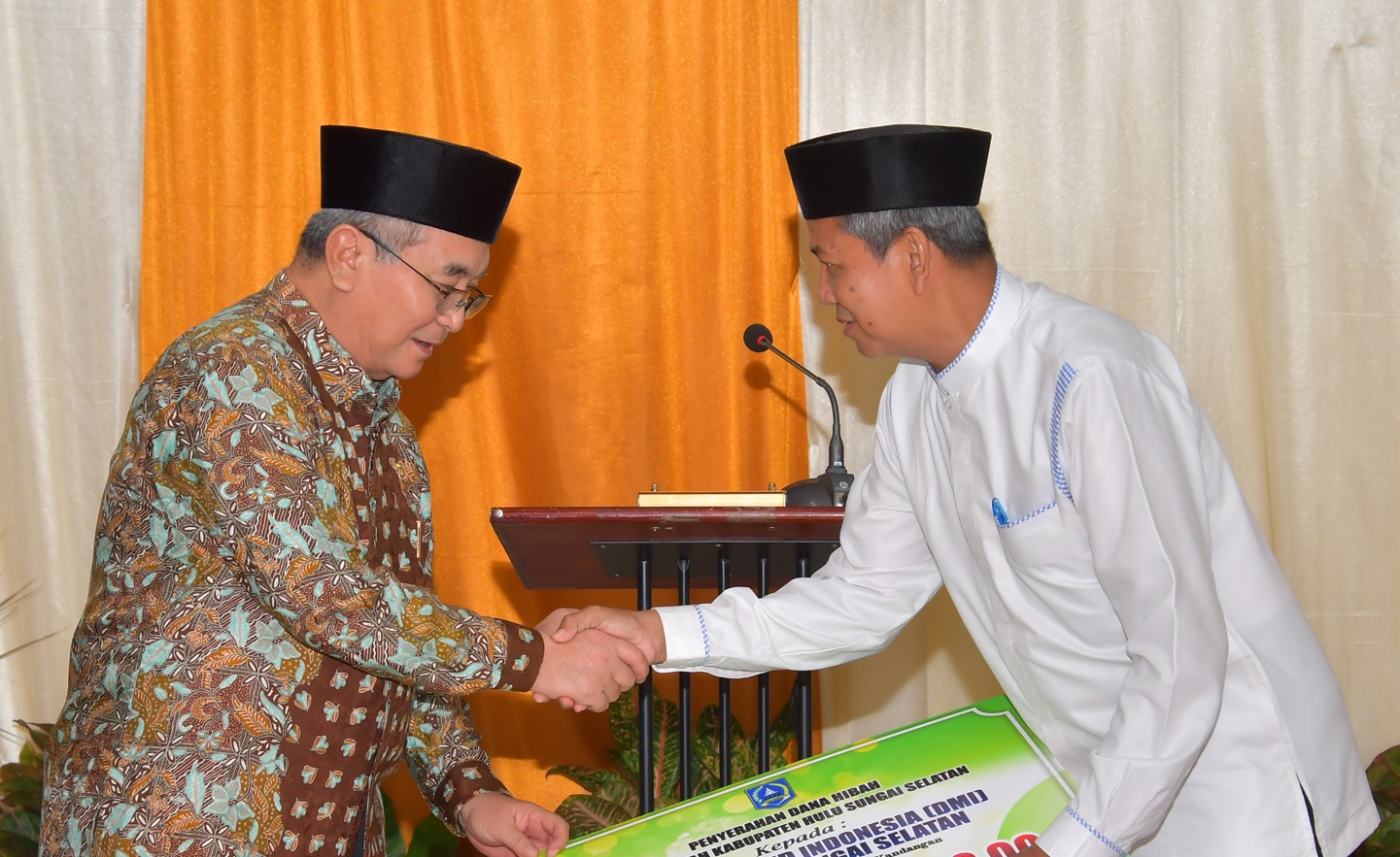 Dana Hibah tersebut diserahkan oleh Bupati Hulu Sungai Selatan Drs. H Achmad Fikry M.AP kepada Ketua MUI TGH. Jamhari Muhdin dan Ketua DMI HSS H. Muhammad Thaha bertempat di Pendopo Kabupaten, Jum’at (17/2).