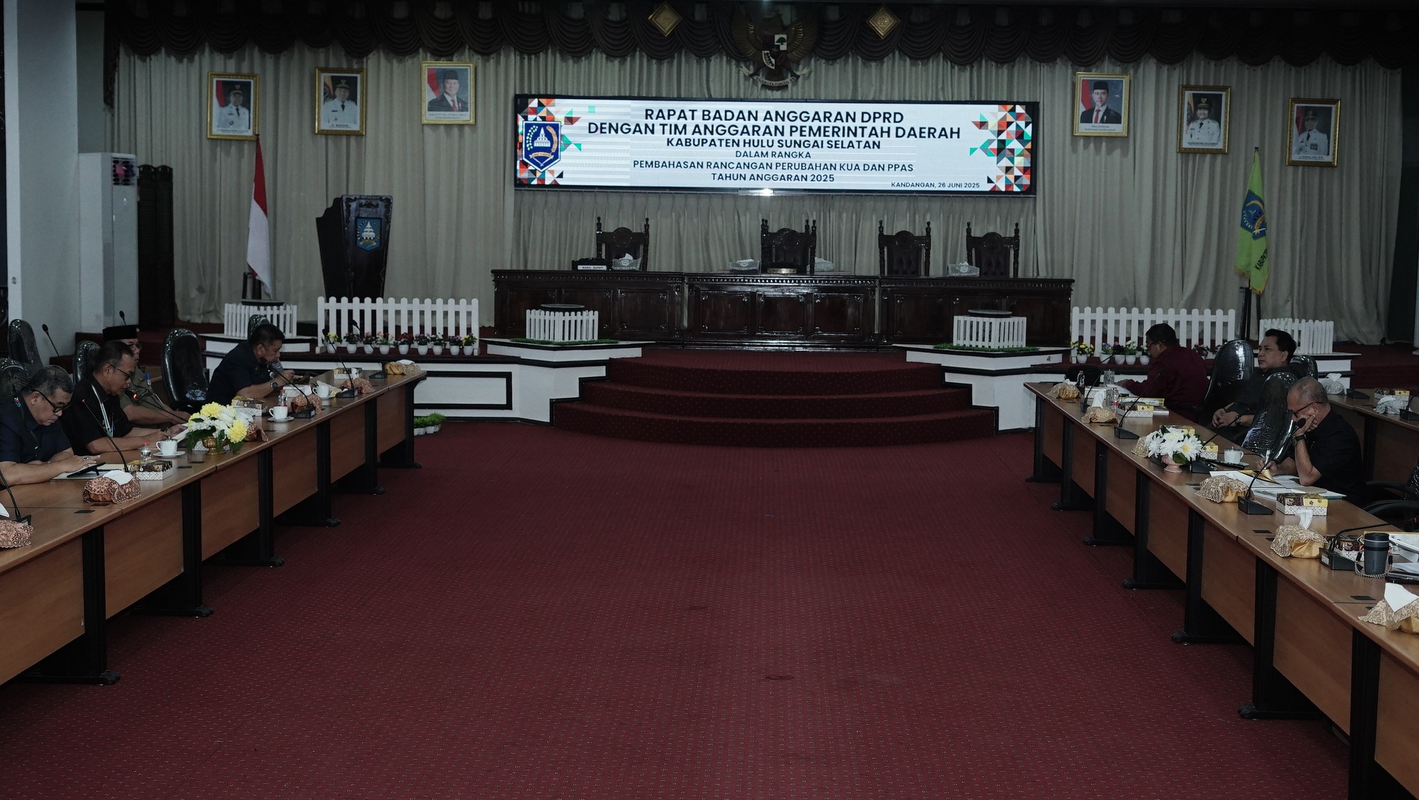 Rapat yang digelar di Ruang Rapat Lantai II Gedung DPRD HSS ini membahas dua agenda penting, yaitu Rancangan Perubahan Kebijakan Umum Anggaran (KUA) dan Perubahan Prioritas serta Plafon Anggaran Sementara (PPAS) untuk Tahun Anggaran 2025.
