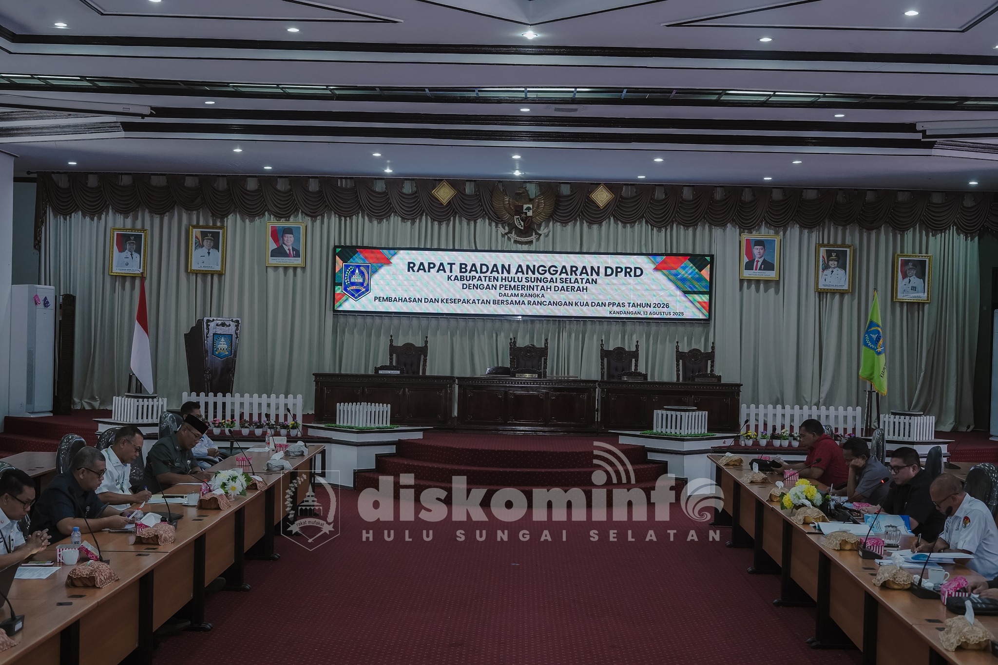 Sebelumnya, Sekretaris Daerah Kabupaten HSS Drs. H. Muhammad Noor, M.AP selaku Ketua Tim Anggaran Pemerintah Daerah (TAPD), bersama Badan Anggaran membahas Rancangan KUA-PPAS Tahun Anggaran 2026. Rapat yang berlangsung di Ruang Rapat Paripurna DPRD Kabupaten HSS ini dipimpin langsung oleh Ketua DPRD H. Akhmad Fahmi, SE, didampingi Wakil Ketua I, Wakil Ketua II, serta seluruh anggota Banggar DPRD.