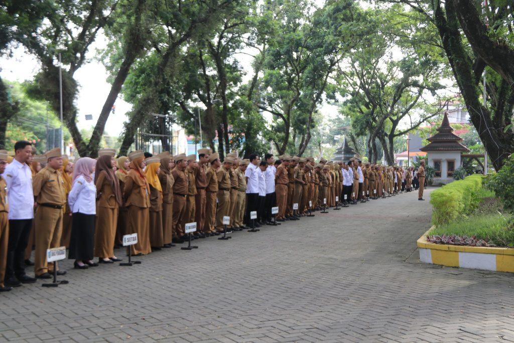 Aparatur Sipil Negara (ASN) Pemerintah Kabupaten Hulu Sungai Selatan (HSS) melaksanakan apel gabungan di halaman Kantor Sekretariat Daerah Kabupaten HSS. Senin (06/05).
