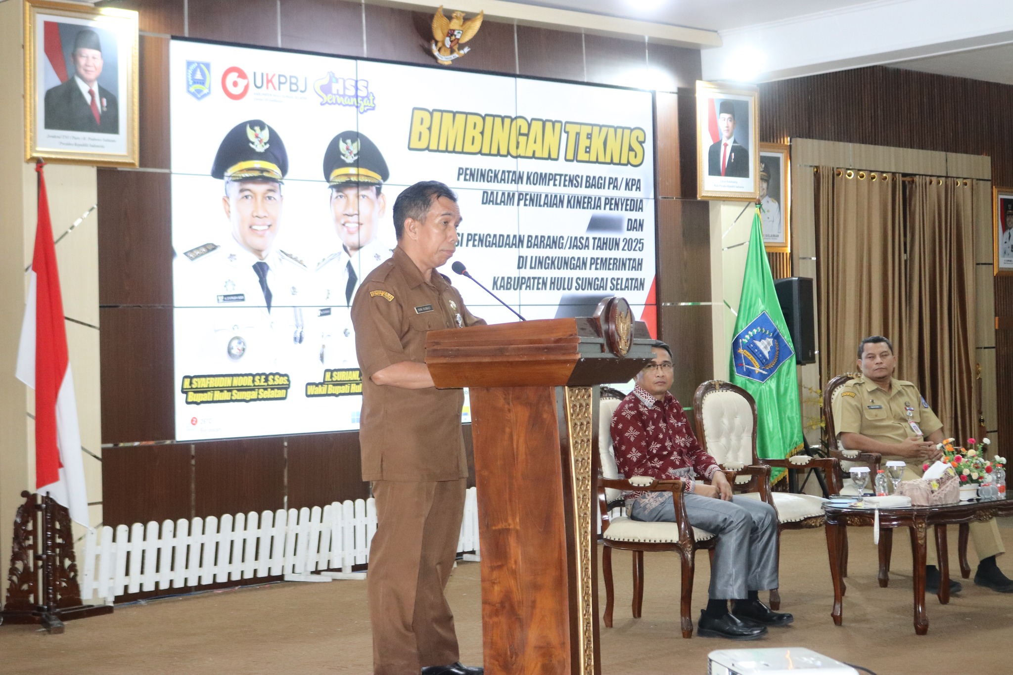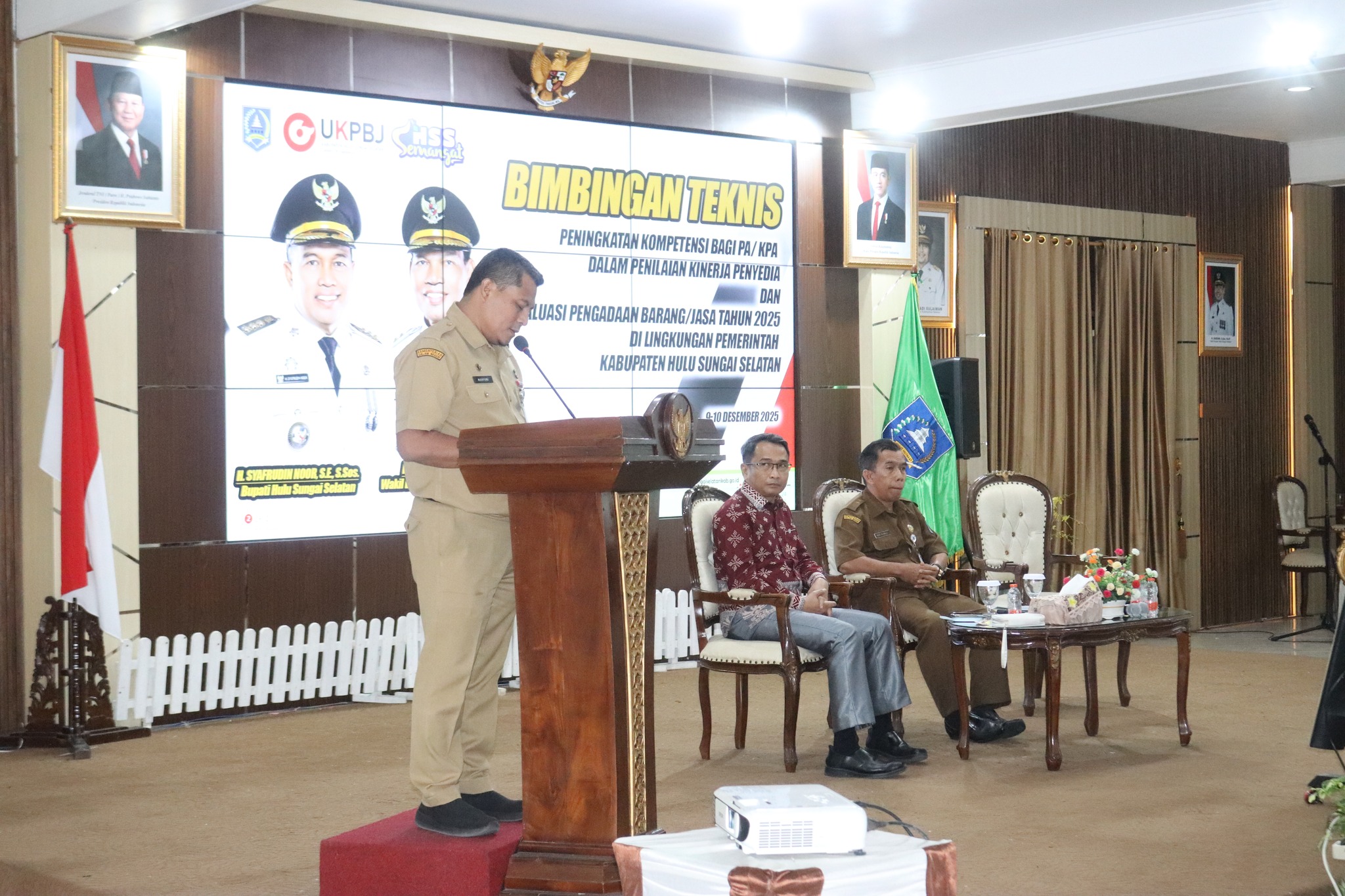 Pemerintah Kabupaten Hulu Sungai Selatan (HSS) melalui Unit Kerja Pengadaan Barang/Jasa (UKPBJ) menyelenggarakan Bimbingan Teknis (Bimtek) Peningkatan Kompetensi Bagi Pengguna Anggaran (PA) dan Kuasa Pengguna Anggaran (KPA) dalam Penilaian Kinerja Penyedia yang dirangkai dengan Evaluasi Pengadaan Barang Jasa Tahun 2025. ​Acara yang berlangsung selama dua hari, mulai 09 hingga 10 Desember 2025, di Pendopo Bupati Kandangan ini merupakan hasil kolaborasi antara UKPBJ HSS, Bagian Umum Sekretariat Daerah (Setda), dan Badan Kepegawaian dan Pengembangan Sumber Daya Manusia (BKPSDM) HSS. ​Kegiatan Bimtek ini dibuka secara resmi oleh Staf Ahli Bidang Hukum dan Politik, Roni Rusnadi, SH, yang hadir mewakili Bupati HSS, H. Syafrudin Noor, SE, S. Sos.