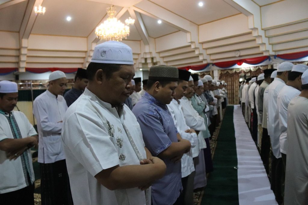 kegiatan ini diawali dengan sholat magrib berjamaah dan dilanjutkan dengan tausiah agama yang di sampaikan oleh Ketua MUI HSS Tuan Guru H. Muhammad Riduan Baseri.