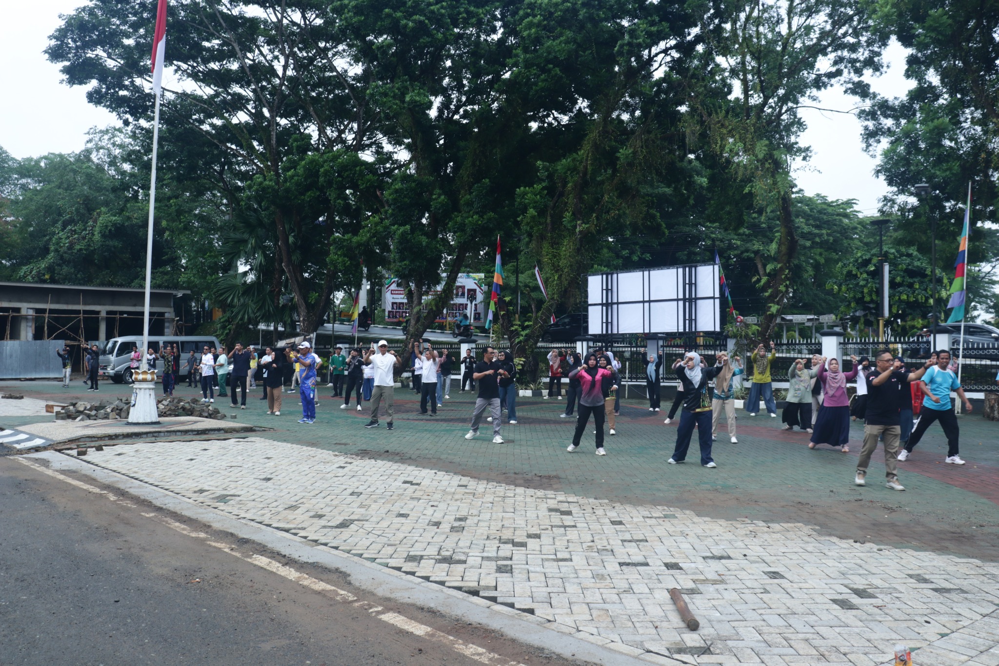 Dengan suasana pagi yang cerah, seluruh peserta tampak antusias mengikuti gerakan demi gerakan senam yang dipandu instruktur. Kegiatan berlangsung penuh semangat dan diharapkan dapat semakin meningkatkan produktivitas kerja seluruh ASN.