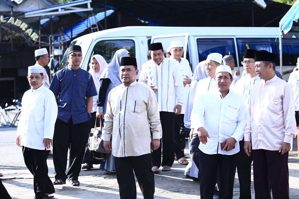 Rombongan Pemerintah Kabupaten Hulu Sungai Selatan (HSS) sebelum berangkat menuju Kediaman Guru H Asmuni (Abah Guru Danau) Bupati HSS Drs H Achmad Fikry MAP di dampingi Wakil Bupati HSS Syamsuri Arsyad S.AP, MA beserta Rombongan Kepala OPD Kab HSS dan Para Camat menghadiri acara Undangan Saprah Amal Masjid Al Abrar Desa Gambah Luar Kecamatan Kandangan, yang nantinya dana tersebut akan digunakan untuk pembelian tanah yang berlokasi diseberang Masjid Al Abrar. Sabtu (13/4).