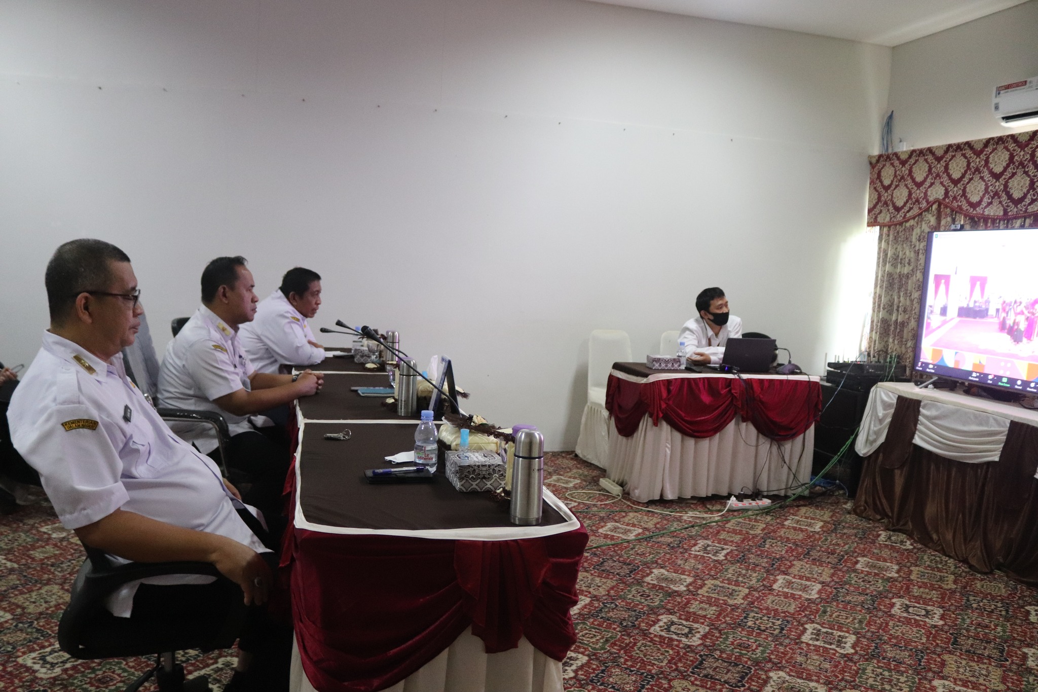 Asisten Administrasi Umum Drs. H. Iwan Friady M. AP, Kepala BPKPD Drs. H. Nanang, FMN, M. Si, dan Inspektur Daerah Kab. HSS Ir. H. Rusmajaya, M. T mengikuti acara pembukaan Road to Hakordia 2022 yang berada di Kalimantan Timur secara daring, bertempat di Media Center Setda Kab. HSS. Rabu (16/11/2022)