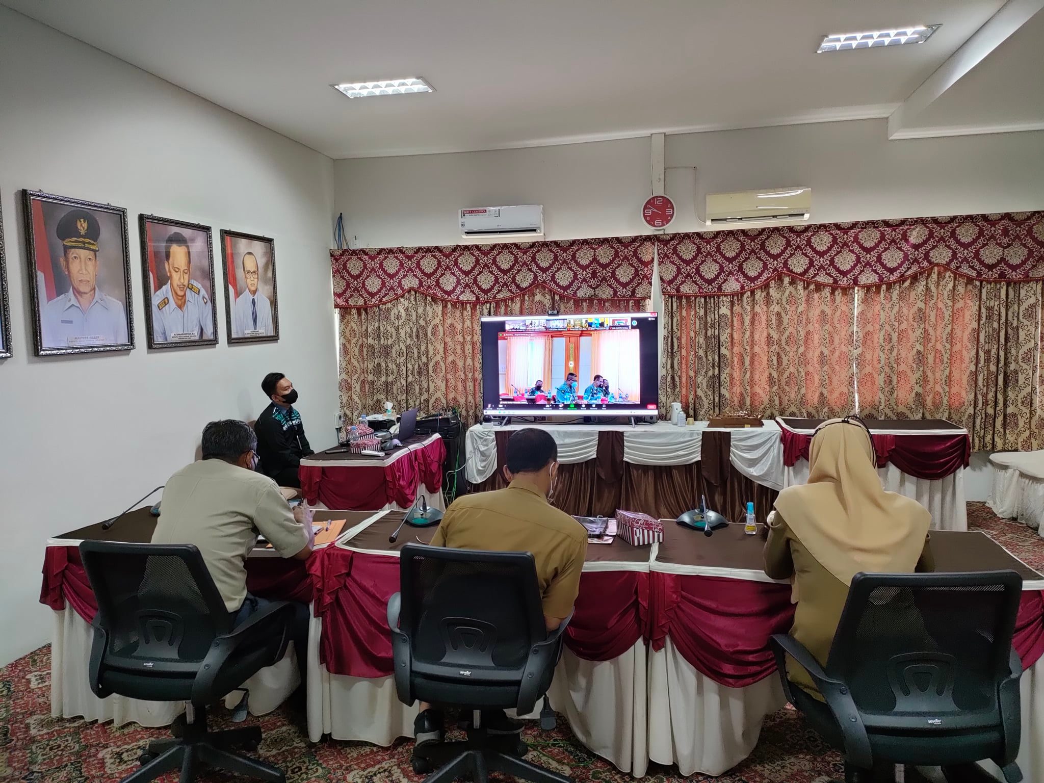 Rapat Evaluasi ini diikuti Asisten Perekonomian dan Pembangunan Setda Kab. HSS Drs. Kamidi, M.IP didampingi Kepala Dinas Kesehatan Kab. HSS dr. Hj. Siti Zainab dan Kepala Pelaksana Harian Badan Penanggulangan Bencana Daerah (BPBD) HSS H. Syamsuddin, S.IP secara virtual di Media Center Setda HSS. (08/02/2022).