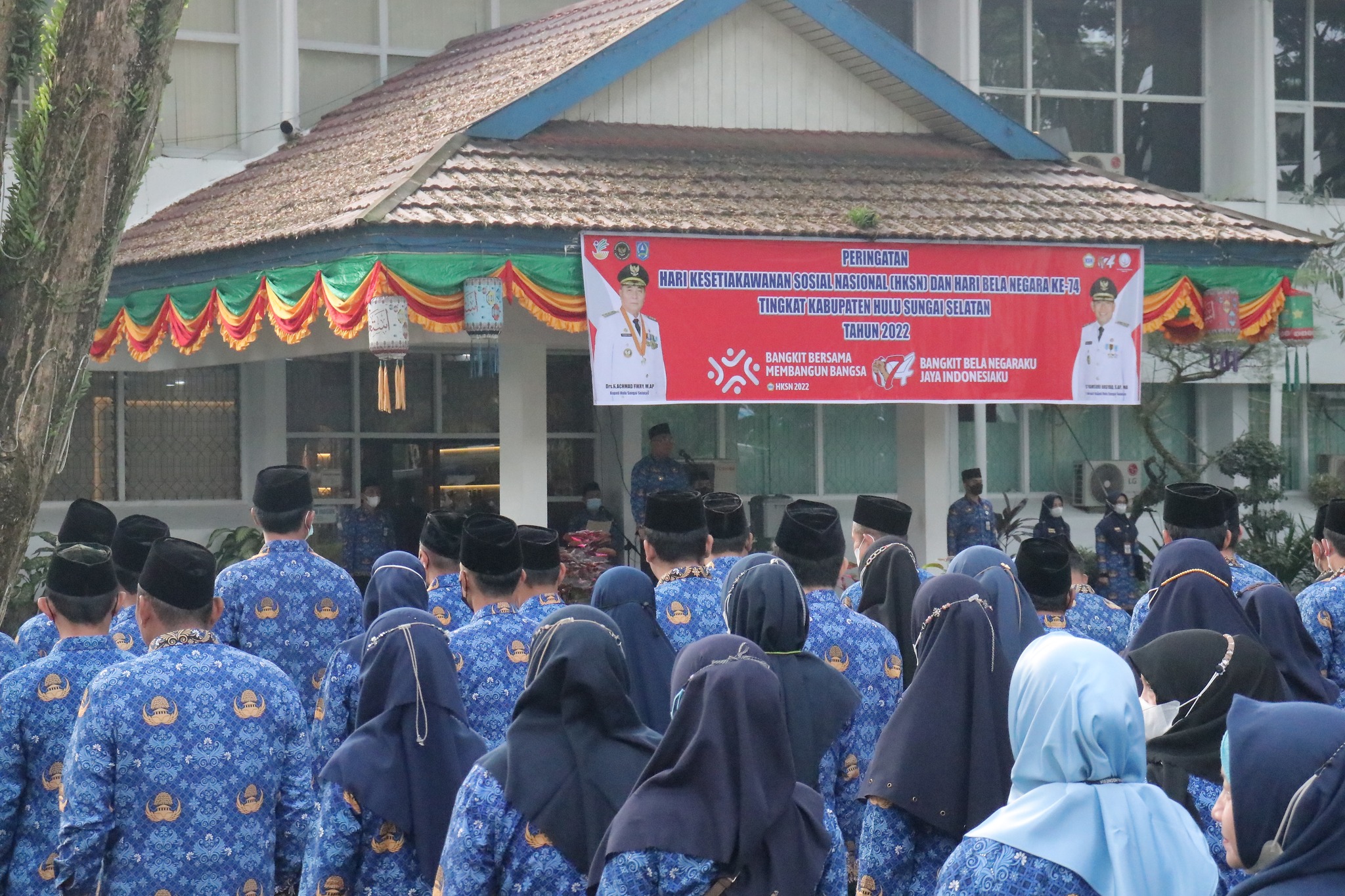 Pemerintah Kabupaten Hulu Sungai Selatan melaksanakan Apel Kesadaran yang dirangkai dengan Peringatan Hari Kesetiakawanan Sosial Nasional dan Hari Bela Negara ke-74 yang dilangsungkan di Halaman Kantor Bupati. Senin (19/12).