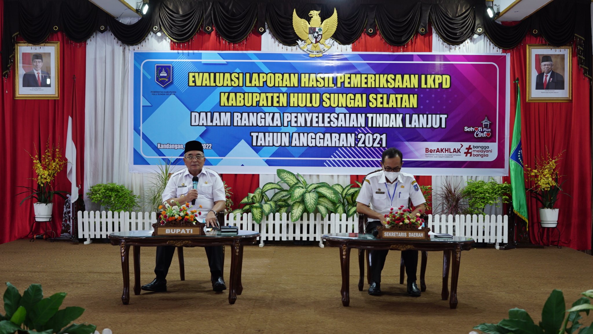 Pemerintah Kabupaten Hulu Sungai Selatan (Kab. HSS) mengadakan acara Evaluasi Laporan Hasil Pemeriksaan LKPD Kab. HSS dalam rangka penyelesaian Tindak Lanjut Rekomendasi LHP BPK RI tahun 2021, Rabu (18/05/2022) di Pendopo Kab. HSS