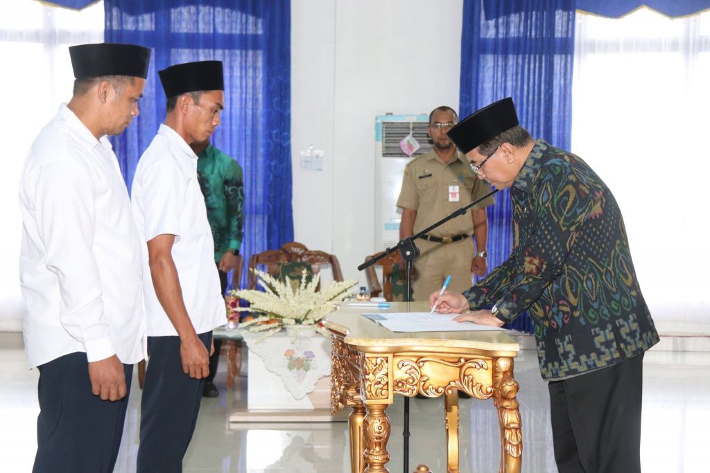 Bupati HSS Drs. H. Achmad Fikry M.Ap mengambil sumpah Anggota Badan Permusyawaratan Desa (BPD) antar waktu masa bakti 2014 – 2020 se Kab. HSS, Senin (04/03) di aula kantor kecamatan Kandangan.