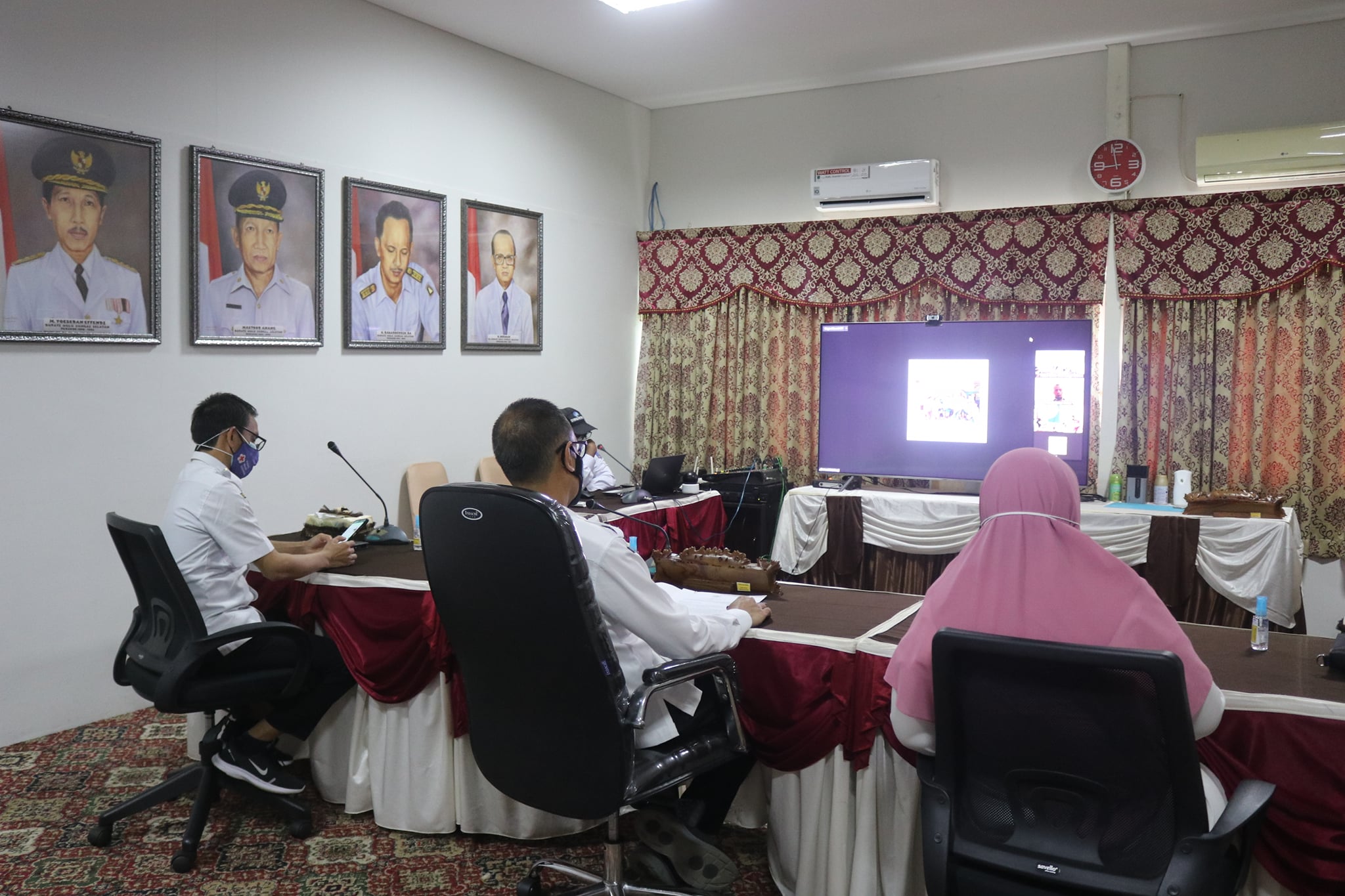 Turut mendampingi Sekda di Media Center, Kepala Dinas Pendidikan dan Kebudayaan Hj. Siti Erma, S.Sos, M.AP, dan Kepala Bagian Hukum Setda Fitri, SH.