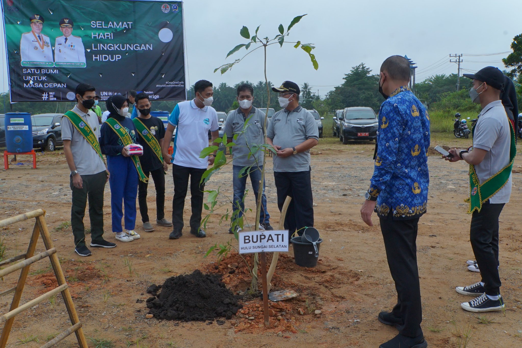 Jumat pagi, Bupati HSS Drs. H. Achmad Fikry, M.AP bersama jajaran Pemerintah Kabupaten Hulu Sungai Selatan melakukan penanaman pohon untuk memperingati Hari Lingkungan Hidup Sedunia yang ditetapkan oleh Majelis Umum PB dari peristiwa Konferensi Stockholm, Swedia pada tanggal 5-6 Juni.