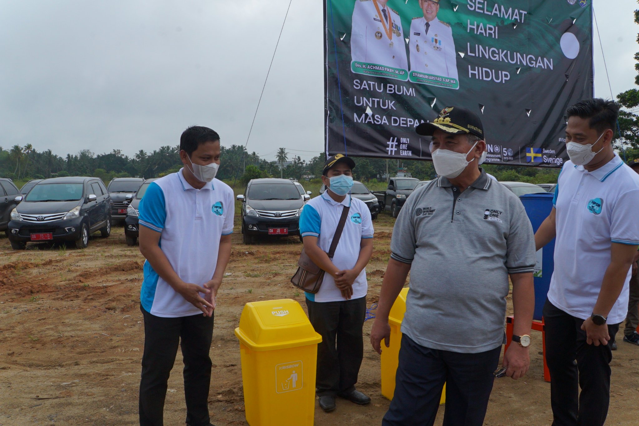 Dengan mengangkat tema Only One Earth (Satu Bumi Untuk Masa Depan), aksi penanaman pohon jenis Tabebuya Merah yang dipimpin oleh Bupati HSS ini berlangsung di Halaman Islamic Center Kab. HSS, Desa Hamalau, Kecamatan Sungai Raya. (17/06/2022).