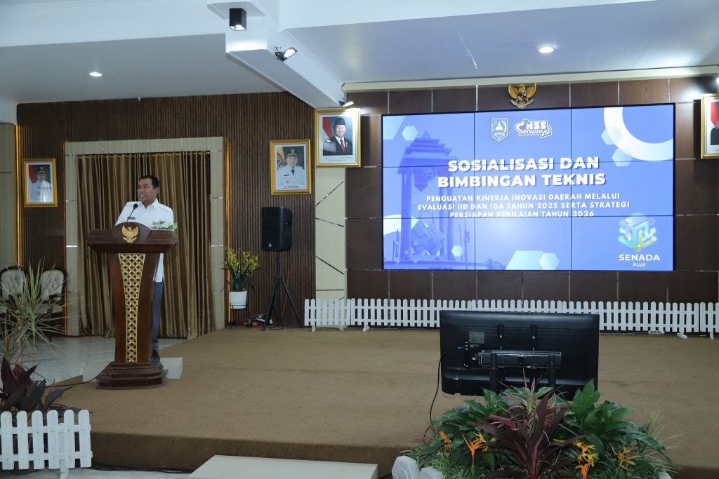Bupati HSS, H. Syafrudin Noor, S.E., S.Sos., secara resmi membuka kegiatan Sosialisasi dan Bimbingan Teknis (Bimtek) Penguatan Kinerja Inovasi Daerah melalui Evaluasi Indeks Inovasi Daerah (IID) dan Innovative Government Award (IGA) Tahun 2025, sekaligus strategi persiapan penilaian tahun 2026, di Pendopo Bupati HSS, Rabu (01/04/2026).