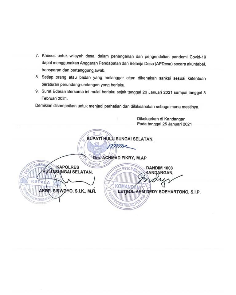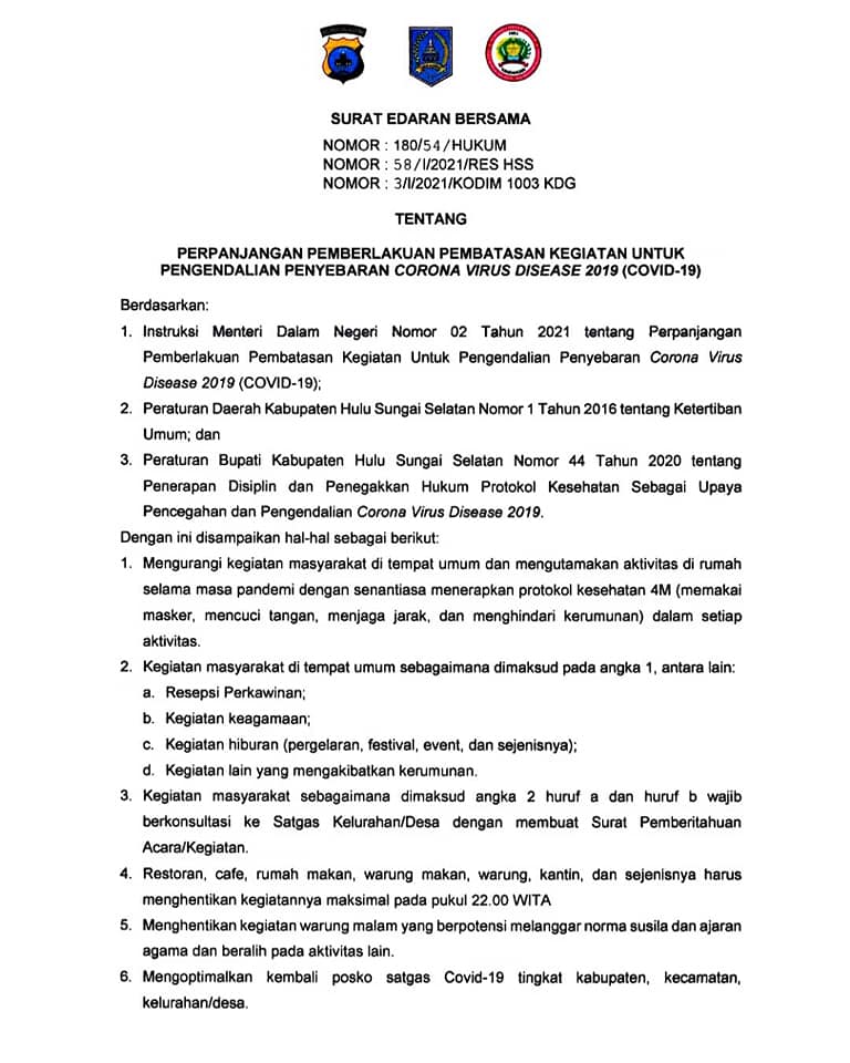PERPANJANGAN PEMBERLAKUAN PEMBATASAN KEGIATAN UNTUK PENGENDALIAN PENYEBARAN CORONA VIRUS DISEASE 2019 (COVID-19)