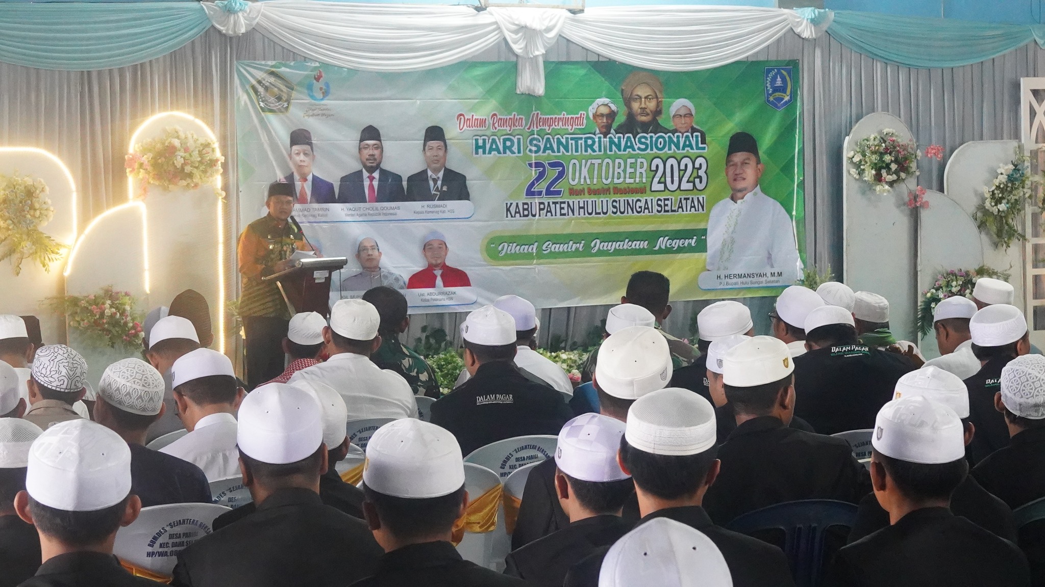 Pembukaan acara Hari Santri Nasional 2023 se Kab. HSS ini juga dihadiri para pimpinan/pengasuh Ponpes se Kab. HSS, Camat 3 Daha serta PJ Ketua PKK Kab. HSS Hj. Rusnawati Hermansyah.