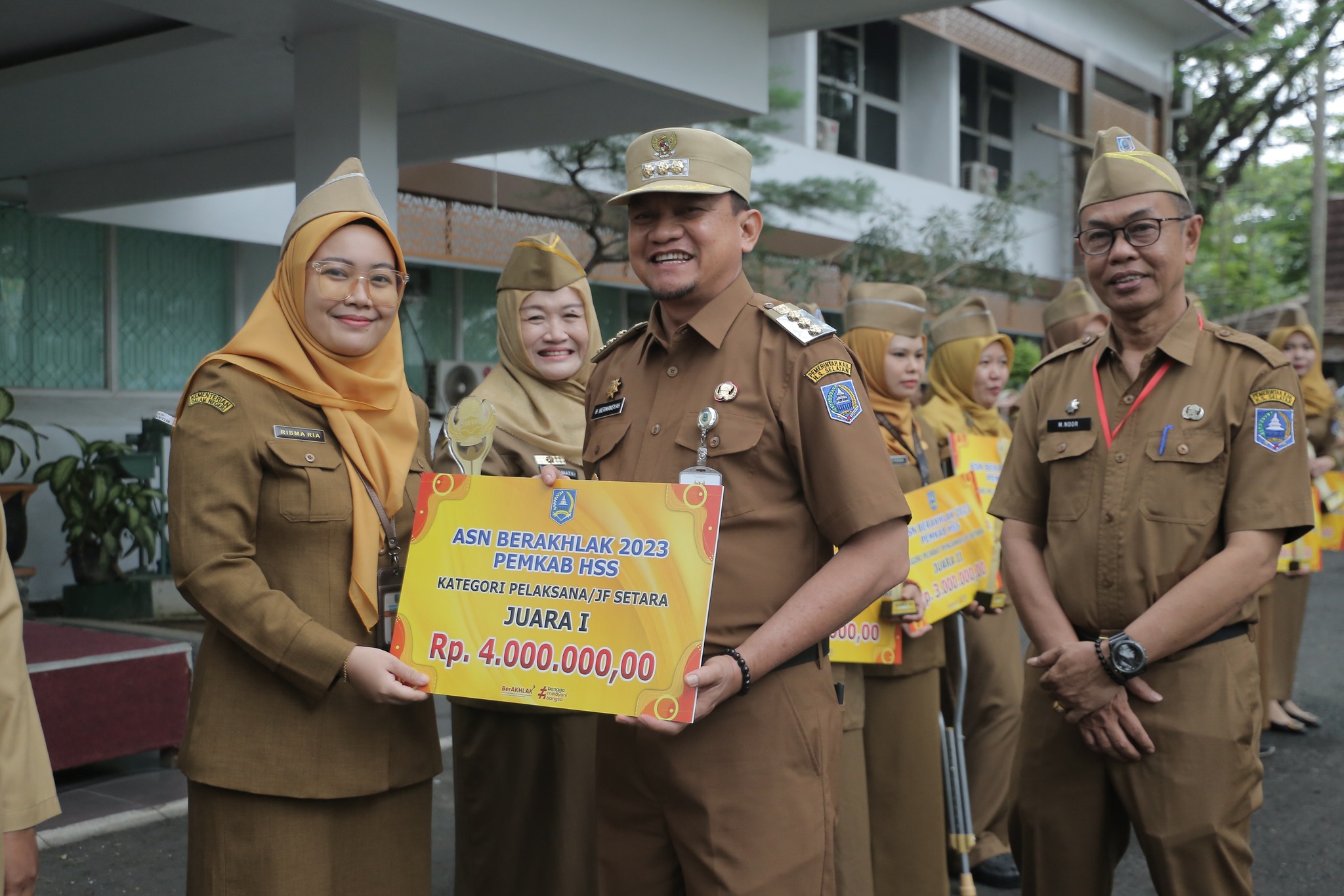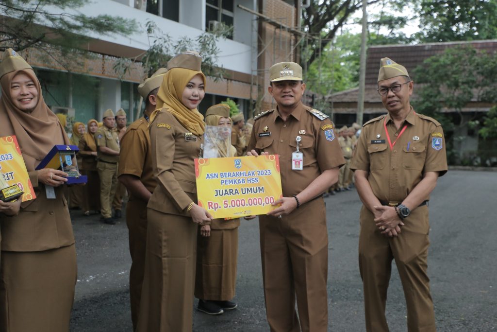Pada kesempatan tersebut dilaksanakan pula penyerahan Penghargaan ASN BerAKHLAK. ASN BerAKHLAK adalah penghargaan yang diberikan Pemkab HSS kepada ASN yang telah memberikan dedikasi, kinerja dan pengabdian secara prima kepada Organisasi dengan menjunjung tinggi nilai-nilai BerAKHLAK yakni Berorientasi Pelayanan, Akuntabel, Kompeten, Loyal, Adaptif dan Kolaboratif menuju ASN yang profesional.