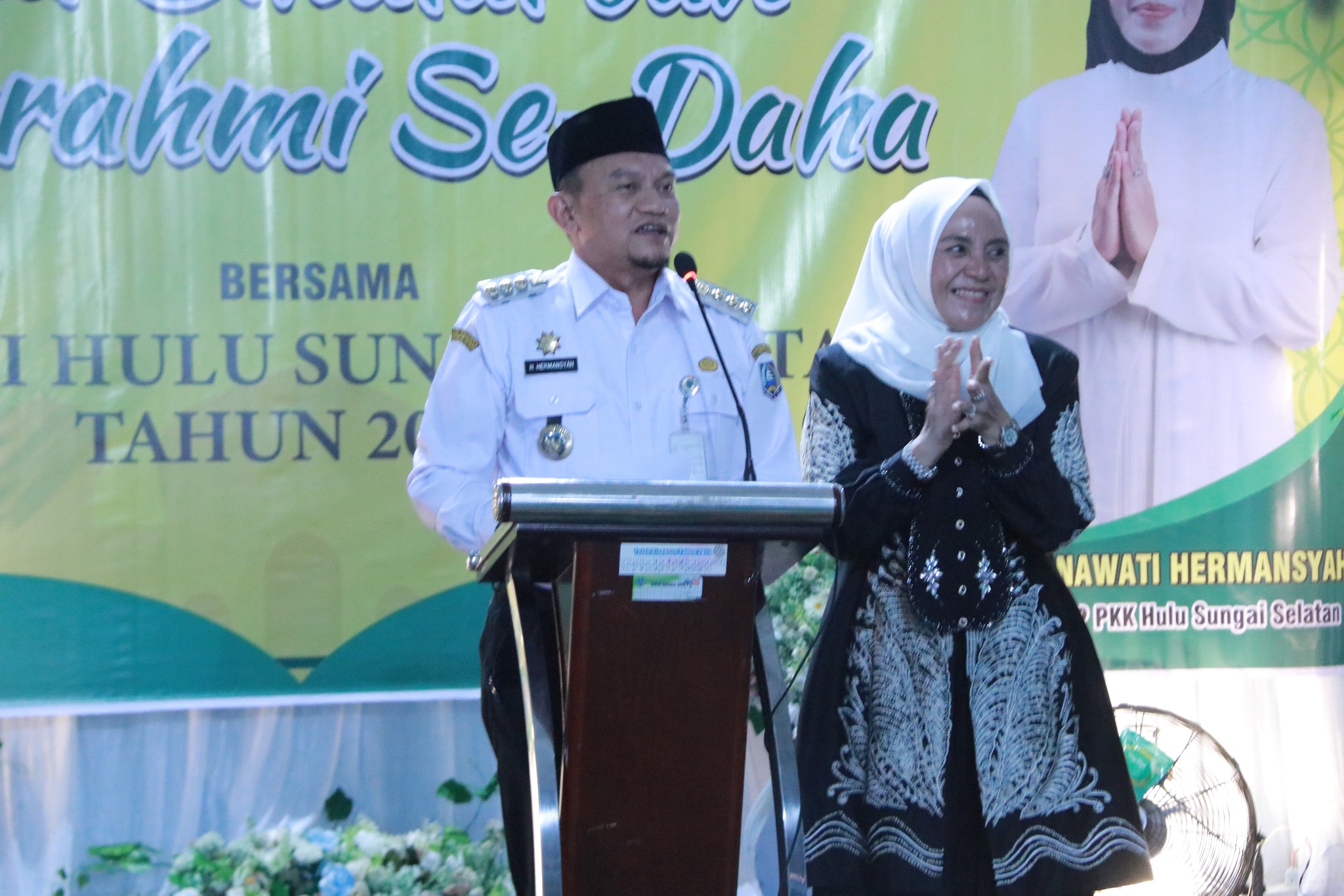 PJ KETUA TP PKK KABUPATEN HSS RUSNAWATI HERMANSYAH, SE, MENYERTAI PJ BUPATI HSS DALAM ACARA HALAL BIHALAL PERANGKAT DESA DAN BPD SE-DAHA