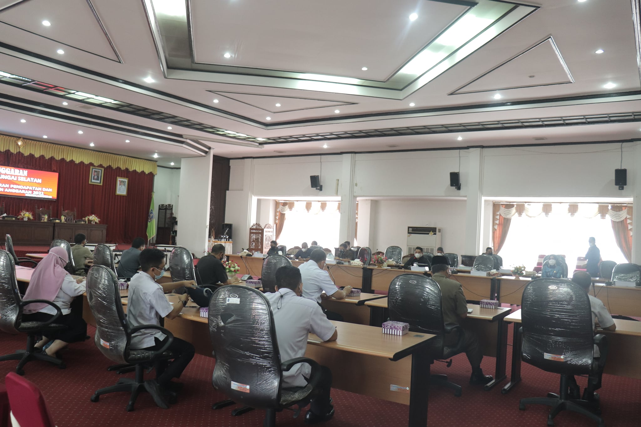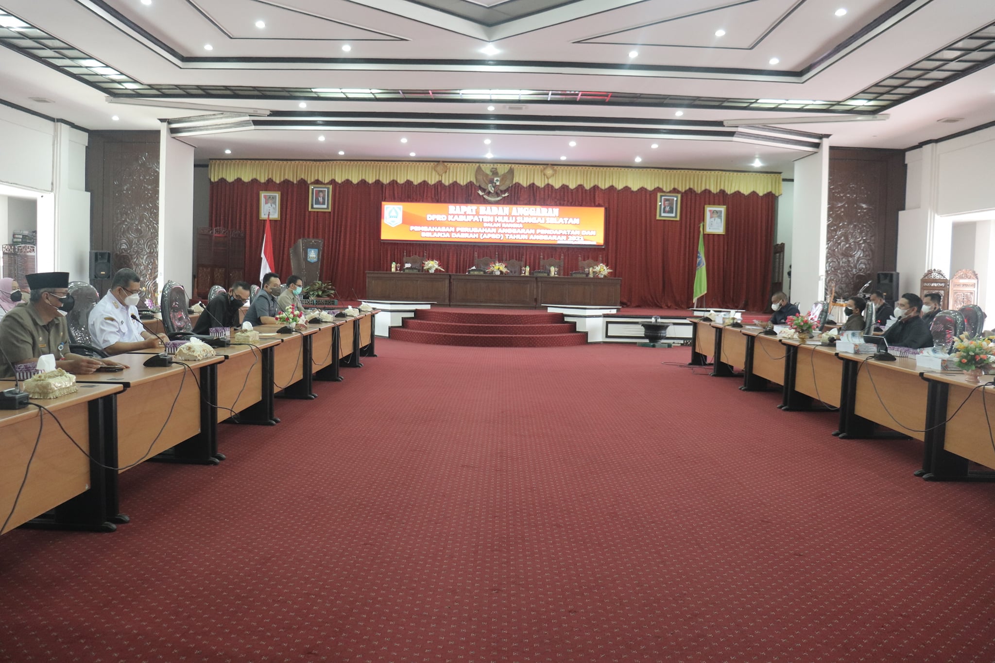 Badan Anggaran Dewan Perwakilan Rakyat Daerah Kabupaten Hulu Sungai Selatan (DPRD Kab. HSS) menggelar Rapat Pembahasan Perubahan Anggaran Pendapatan dan Belanja Daerah (APBD) Tahun Anggaran 2021 bersama pihak eksekutif, bertempat di Aula Rapat Lantai II DPRD, Rabu (08/09).