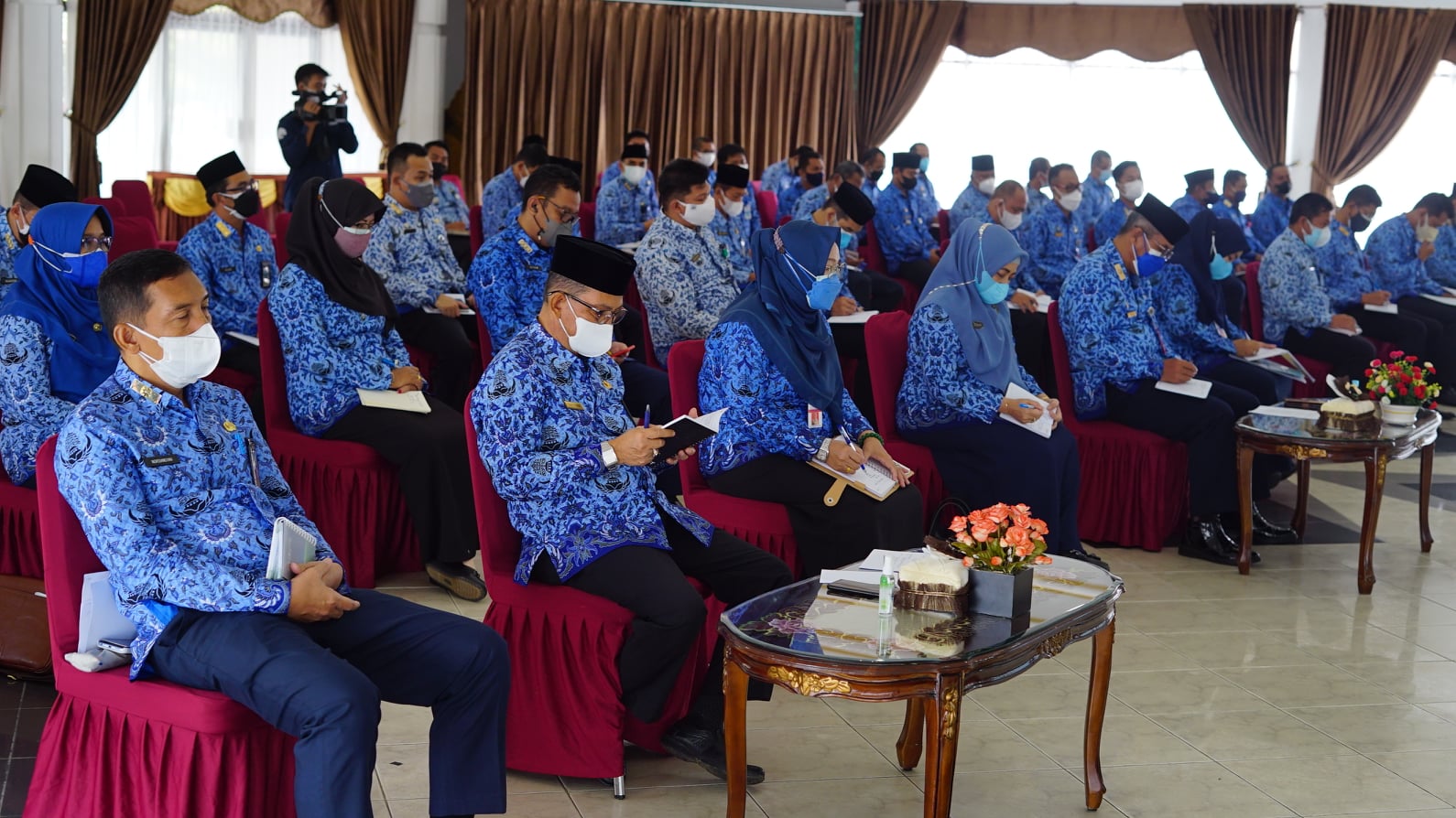Bupati HSS menjelaskan untuk peringatan Hari Jadi Kab. HSS ke – 71 tahun 2021 ini akan tetap dilaksanakan namun kegiatan masih dibatasi dan tetap menjaga protokol kesehatan dengan ketat.